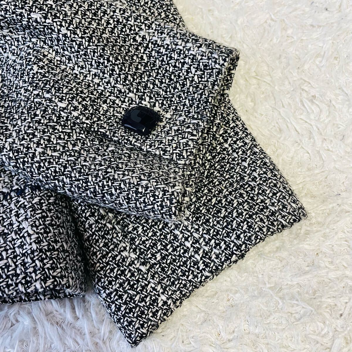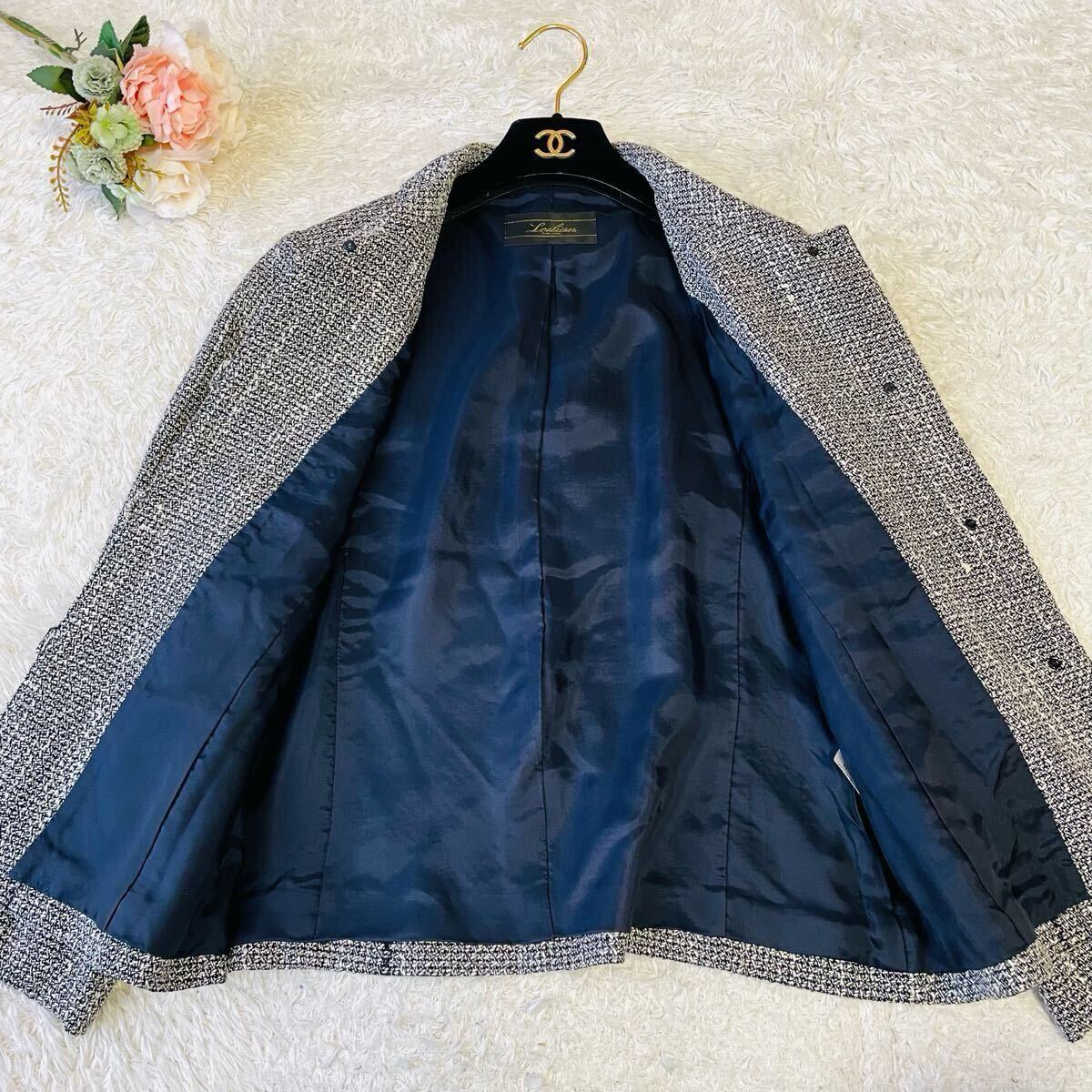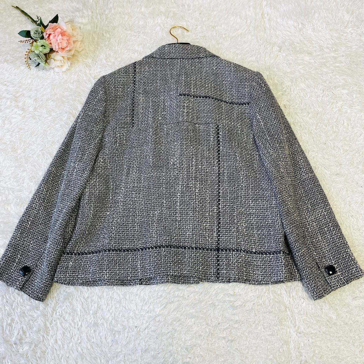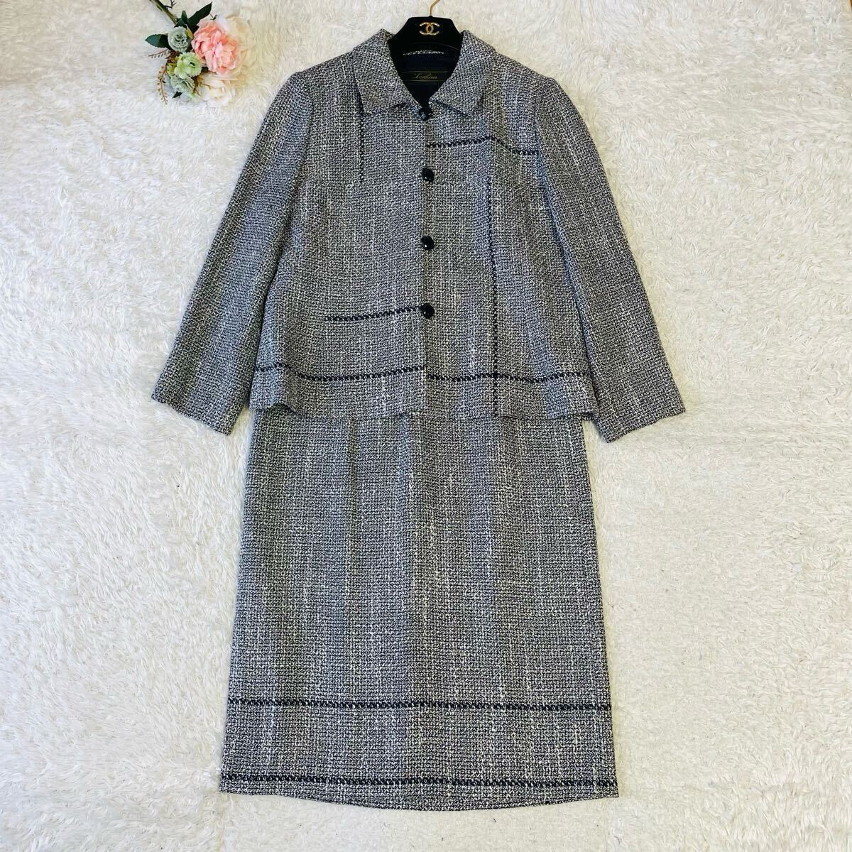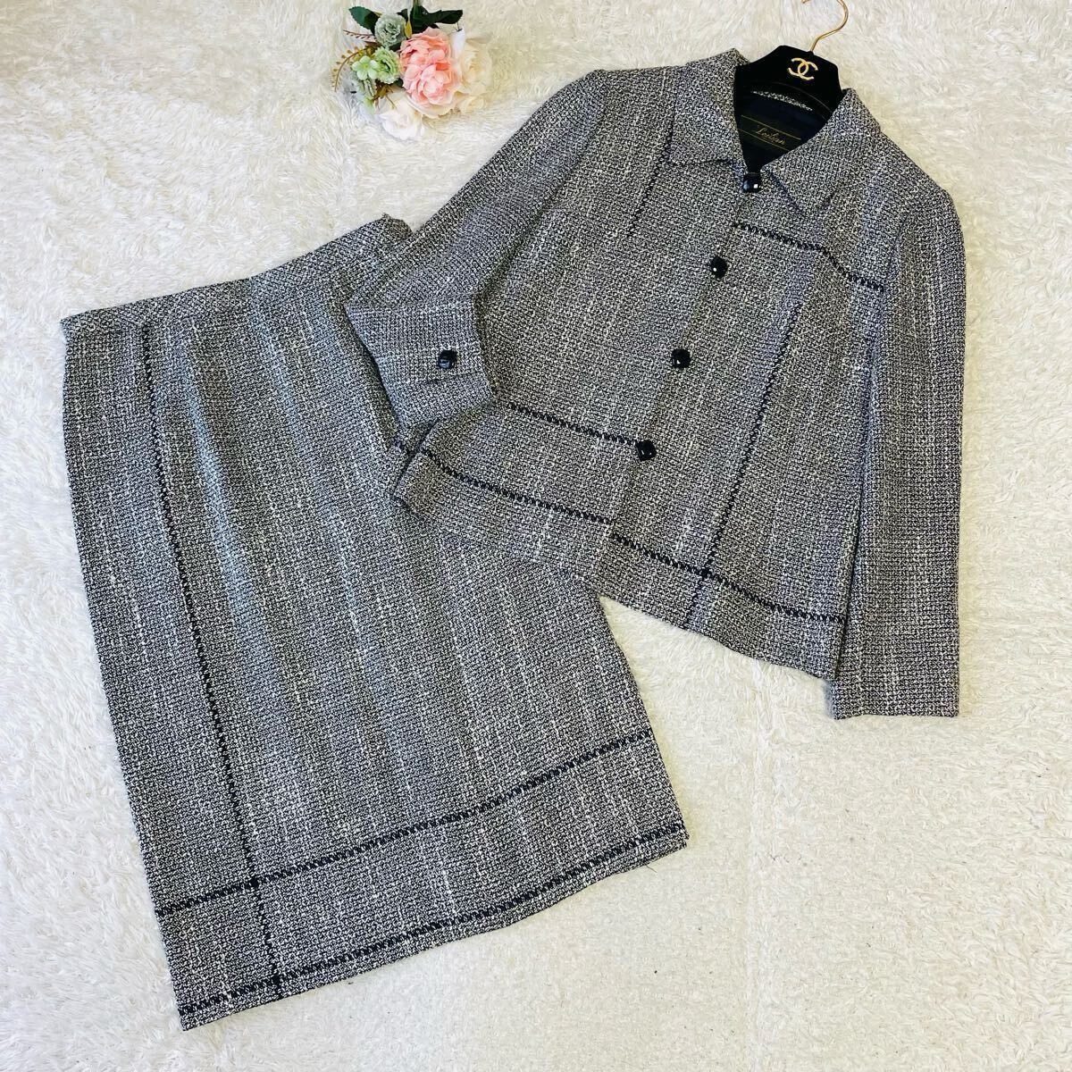 美品◆レリアン Leilian ツイード セットアップ スーツ 9号 シルク ウール ジャケット スカート 2点 上下 フォーマル グレー系