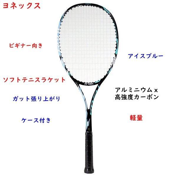 ソフトテニスラケット/ヨネックス/貼り上がり/ケース付き/アイスブルー/初心者向き/7800円即決