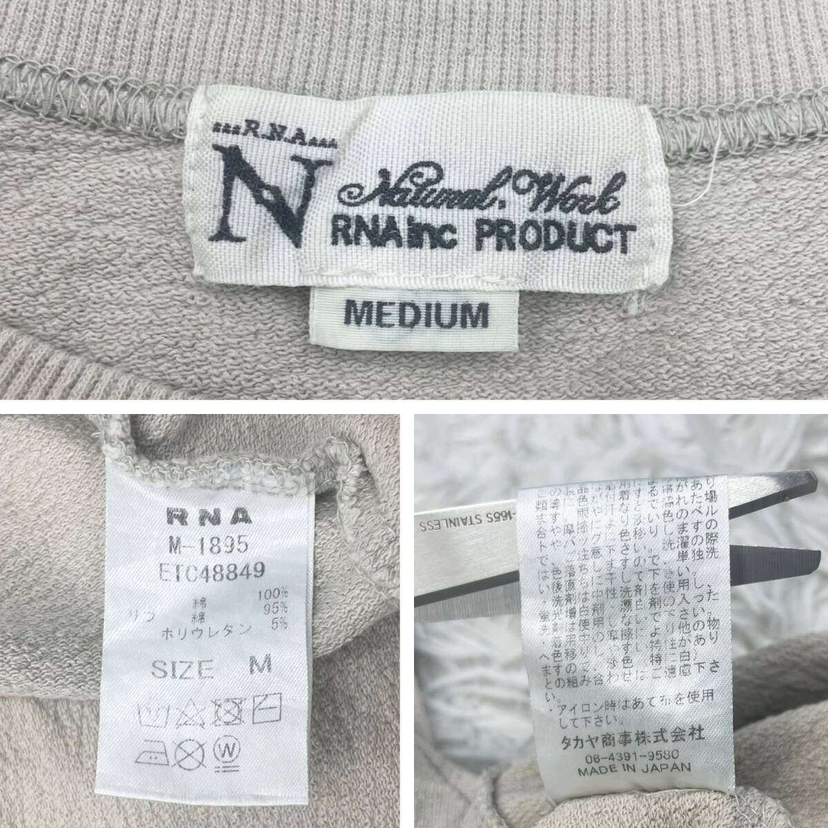 【A3578】R.N.A アールエヌエー トレーナー レディース 長袖 グレーベージュ ルーズフィット カジュアル ゆったり シンプル 春秋冬 Mサイズ