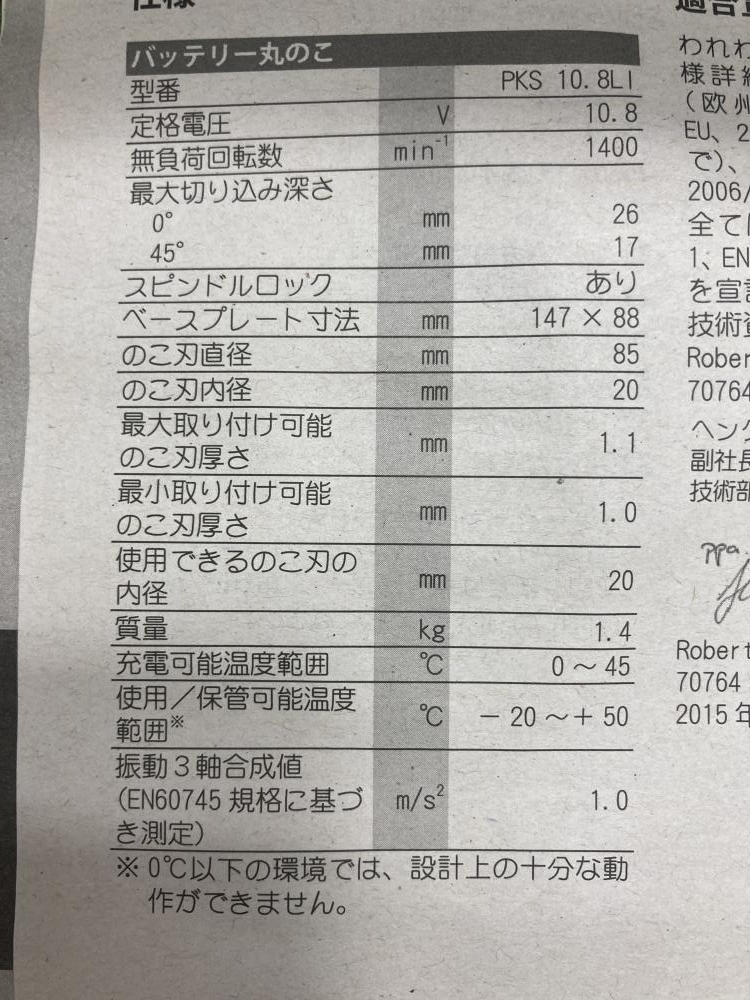 BOSCH ■商品名 バッテリ-丸のこ ■型番 PKS10.8Li |