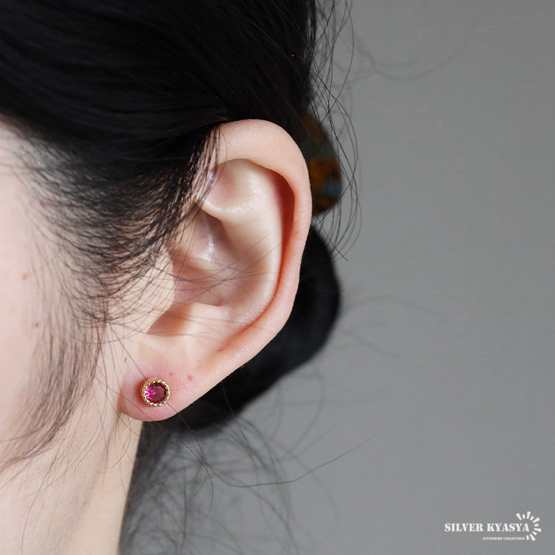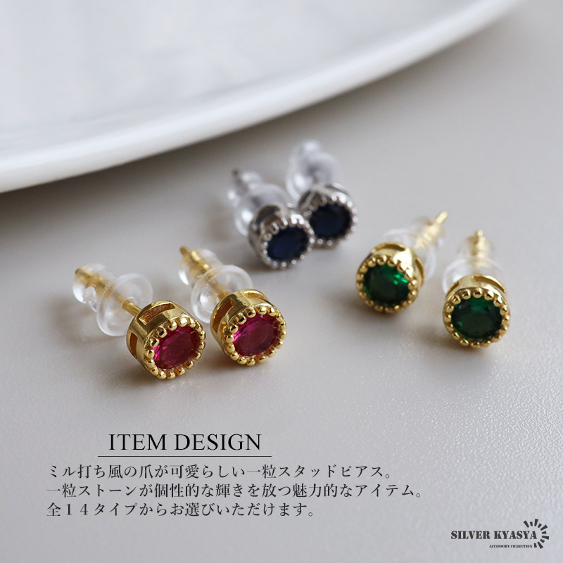 ミル打ち風の爪が可愛らしい一粒スタッドピアス。一粒ストーンが個性的な輝きを放つ魅力的なアイテム。全14タイプからお選びいただけます。