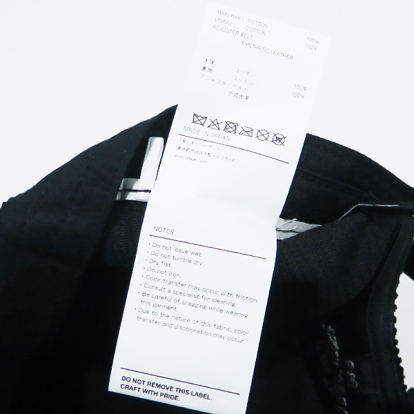 [素材] 本体:コットン 100%  裏地:コットン 100%  アジャスターベルト:合成皮革
