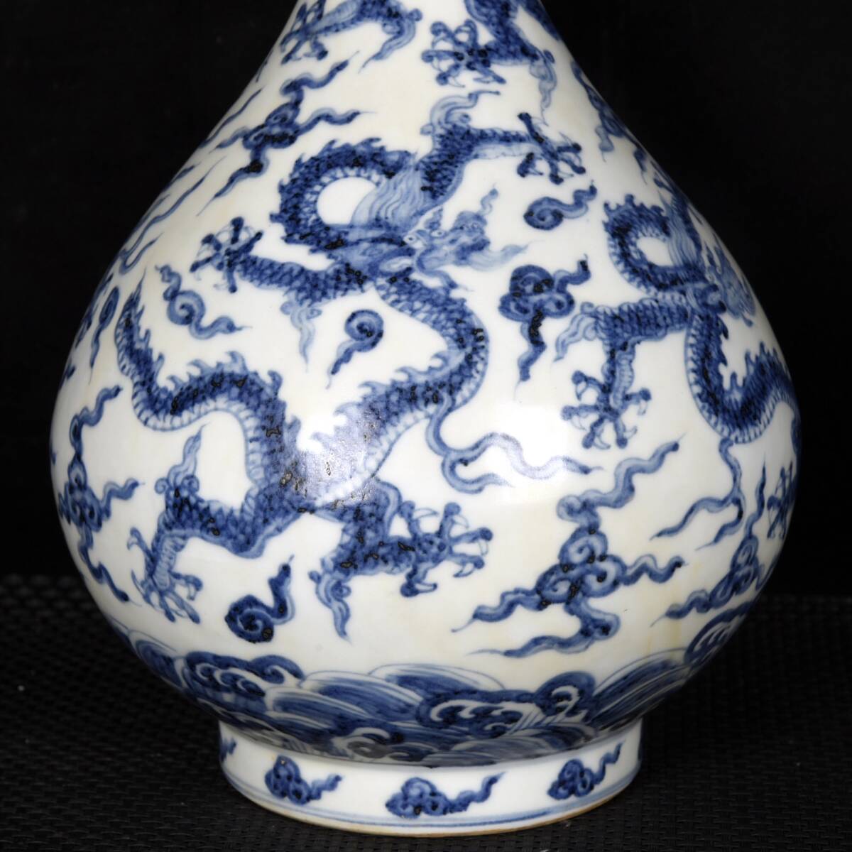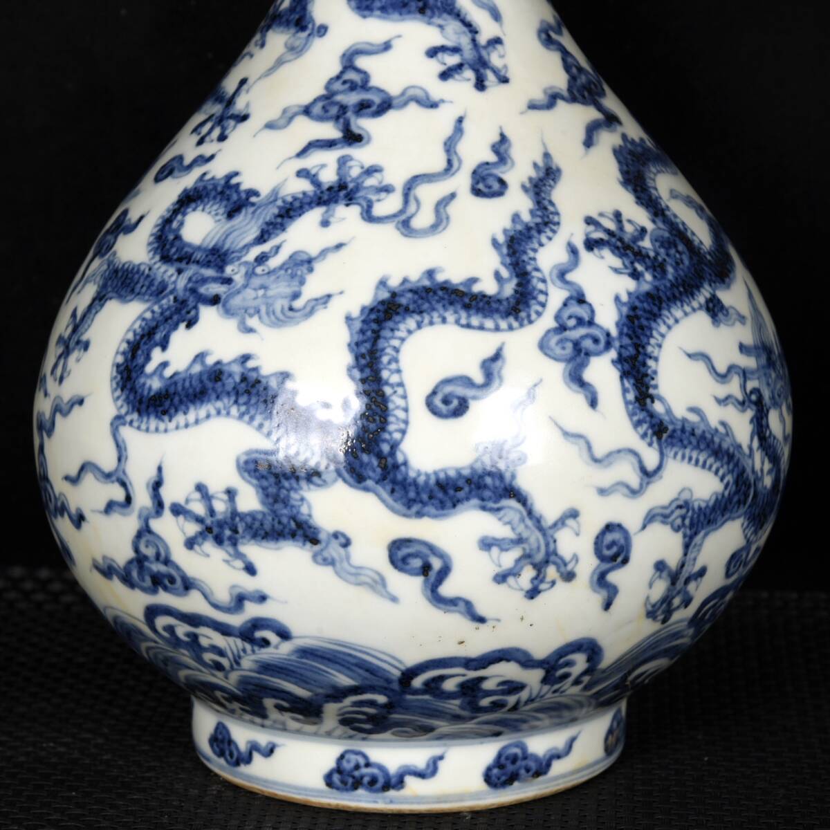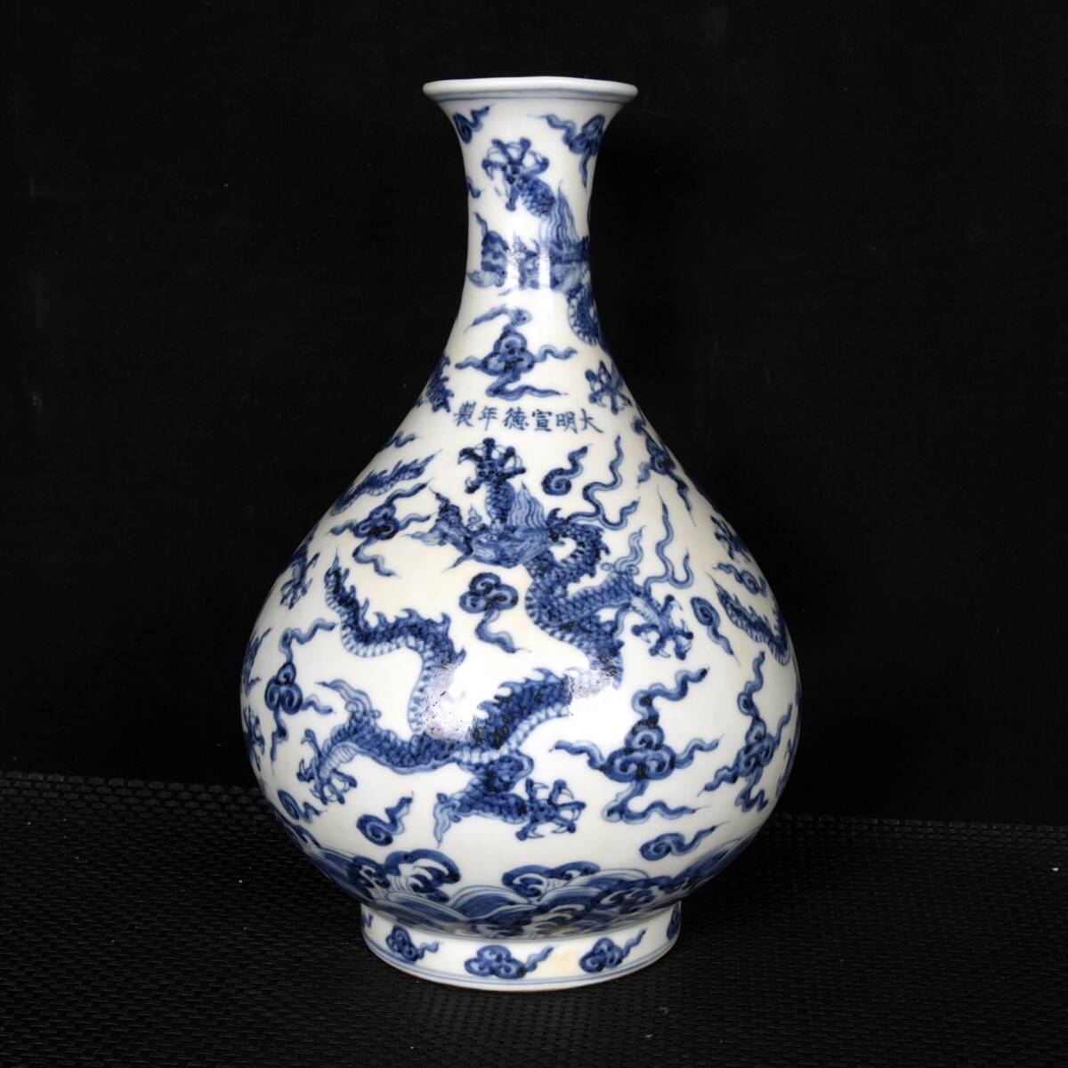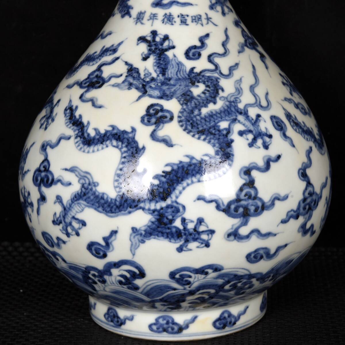 | 【蔵友館蔵品・明・宣德年製款・古陶瓷品・青花・海水龍紋・玉壺春瓶】・希少珍品・置物・賞物・中国時代美術 |