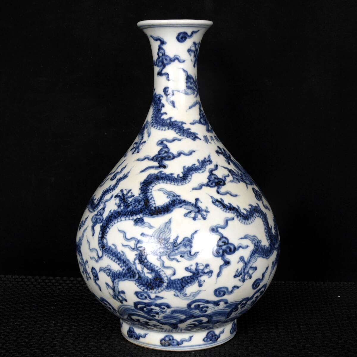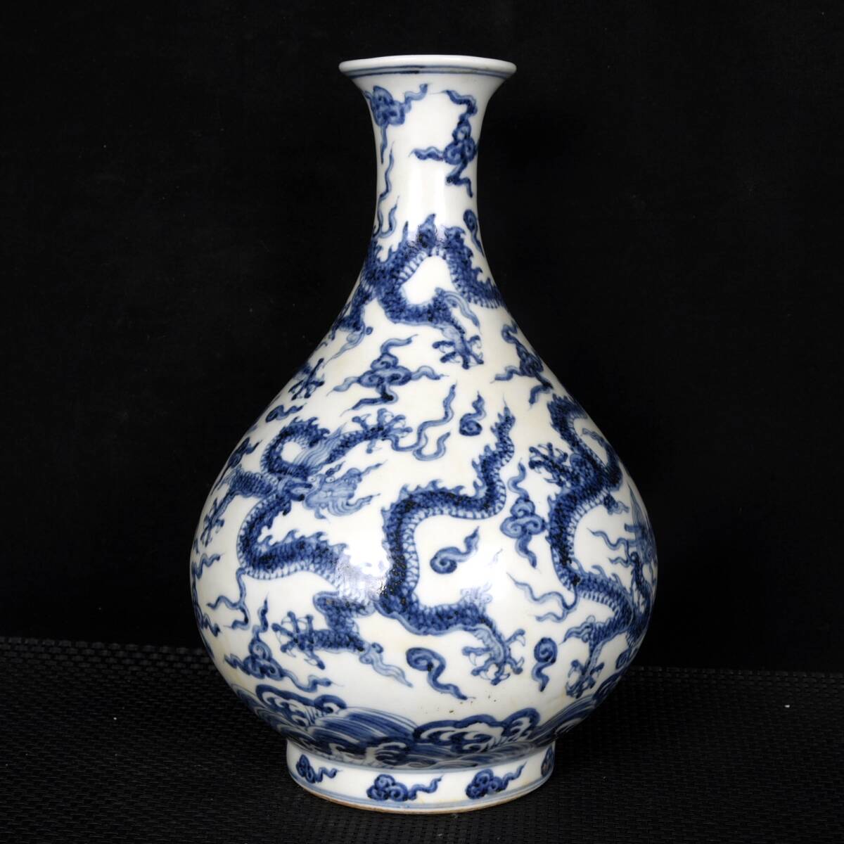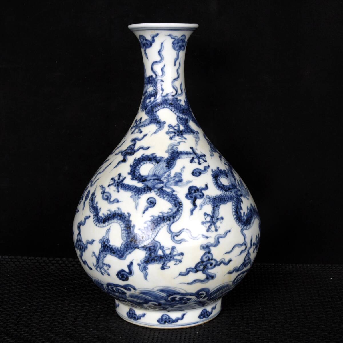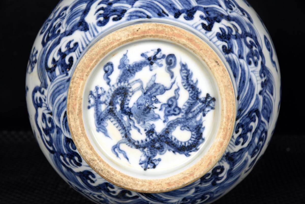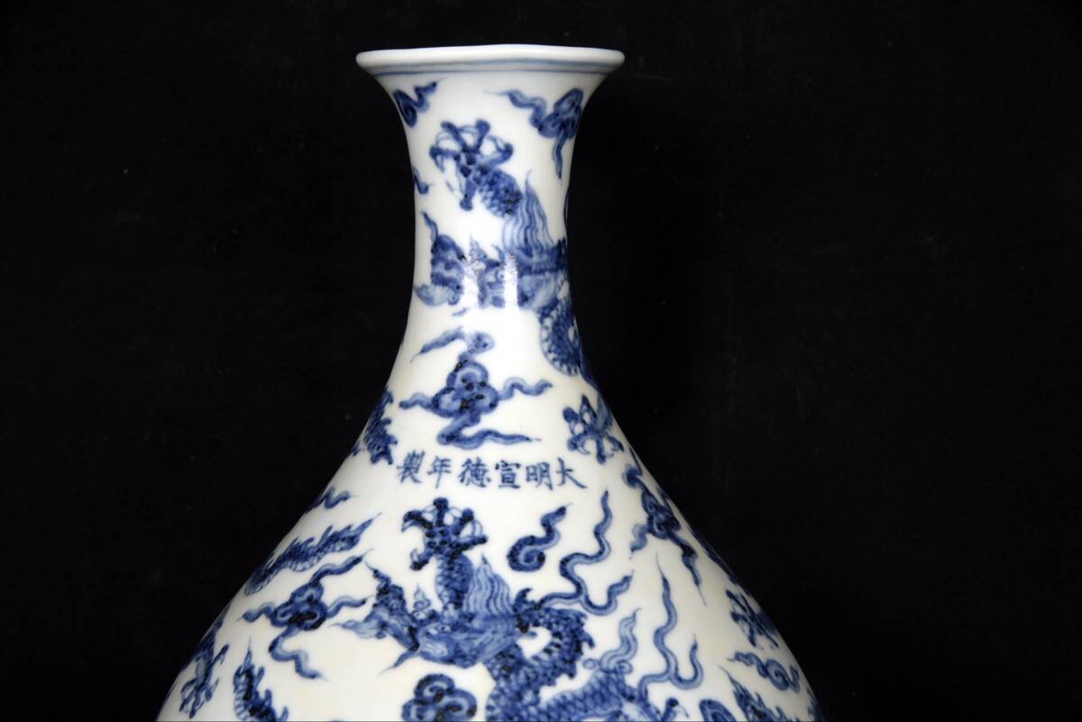 | 【蔵友館蔵品・明・宣德年製款・古陶瓷品・青花・海水龍紋・玉壺春瓶】・希少珍品・置物・賞物・中国時代美術 |