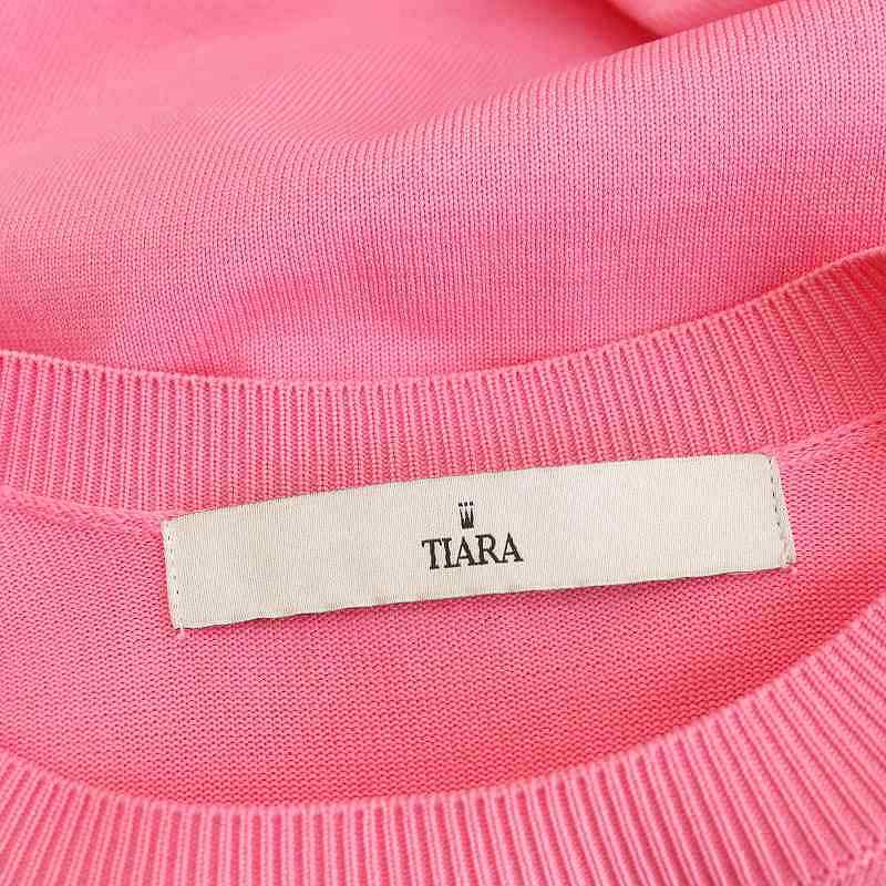 ティアラ Tiara パフスリーブニット セーター 七分袖 クルーネック ピンク /AT ■OS レディース