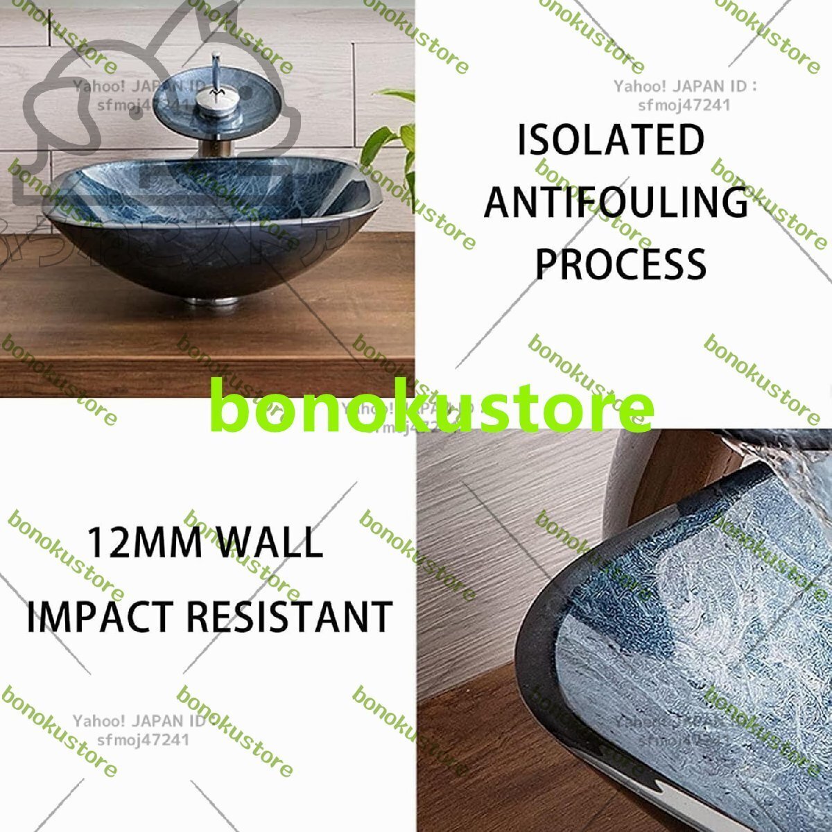 品質保証 手洗い器&蛇口セット 洗面ボウル 洗面器 バスルーム 洗面台 洗面用 強化ガラス製 排水金具付と蛇口付き F1521