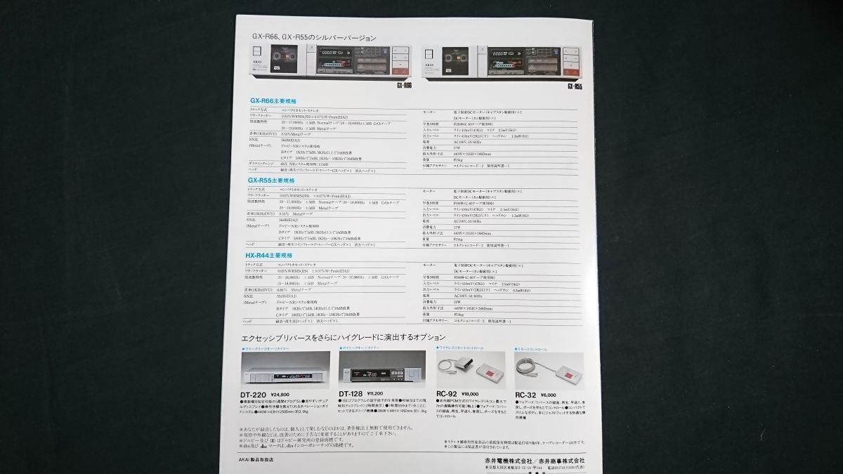 【昭和レトロ】『AKAI(アカイ)エクセッシプリバース カセットデッキ GX-R66/GX-R55/HX-R44 カタログ 昭和59年2月』赤井電機株式会社 | |