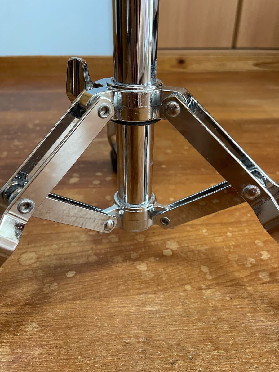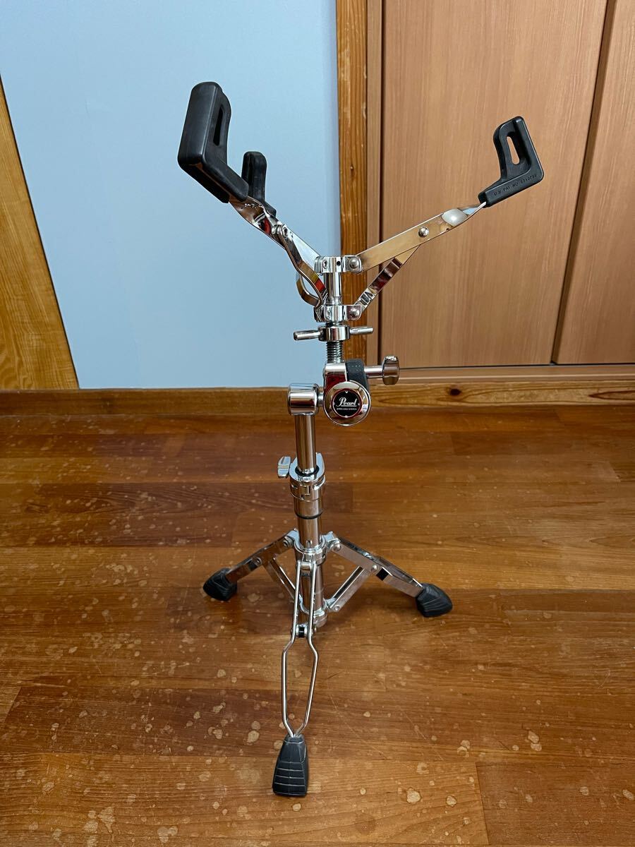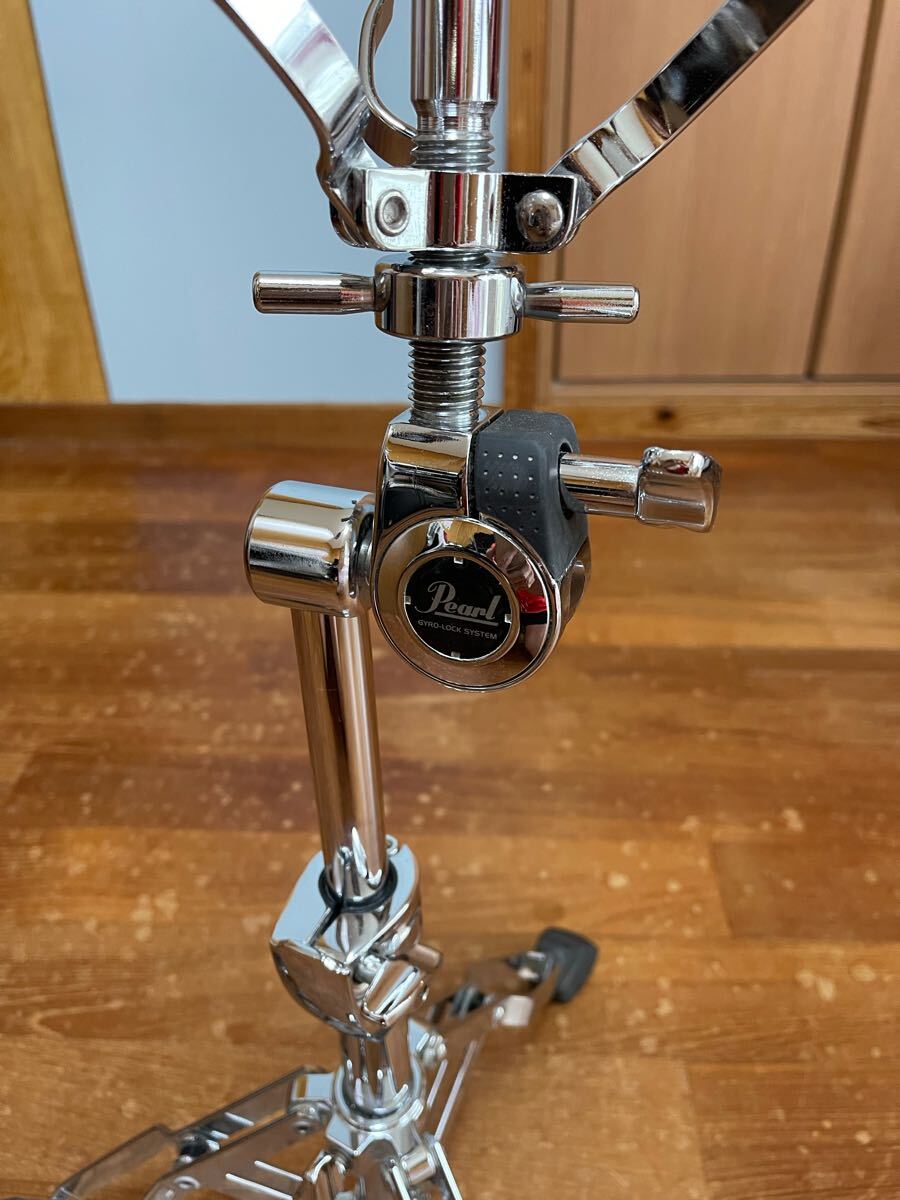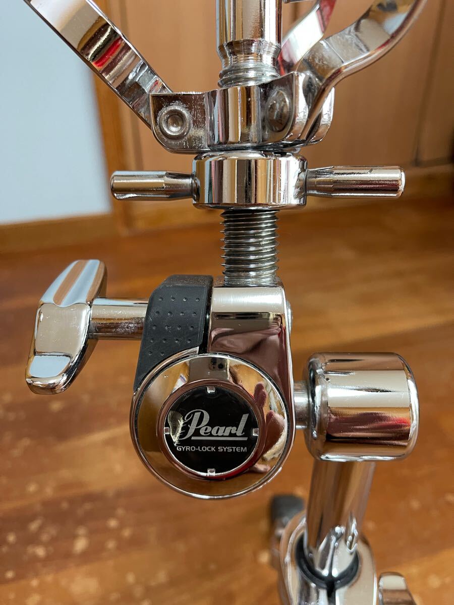 10年以上前に購入したパールのスネアスタンドです。ジャイロロックシステム採用のモデルなので自由にセッティングできます。大切に使用してきたので大きな破損はなく今でも問題なく使用できます。ただし10年以上経つので経年劣化によるビスのサビや汚れがありますが状態がよく光沢が保たれています。