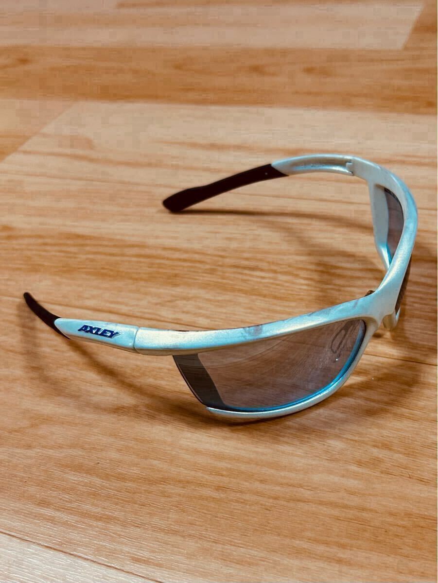 AXLEY アクスレイ スポーツ サングラス アイウェア 淡いパールブルー?マーブル?ブルーのハーフミラー イタリア製 オレンジレンズ 袋付き