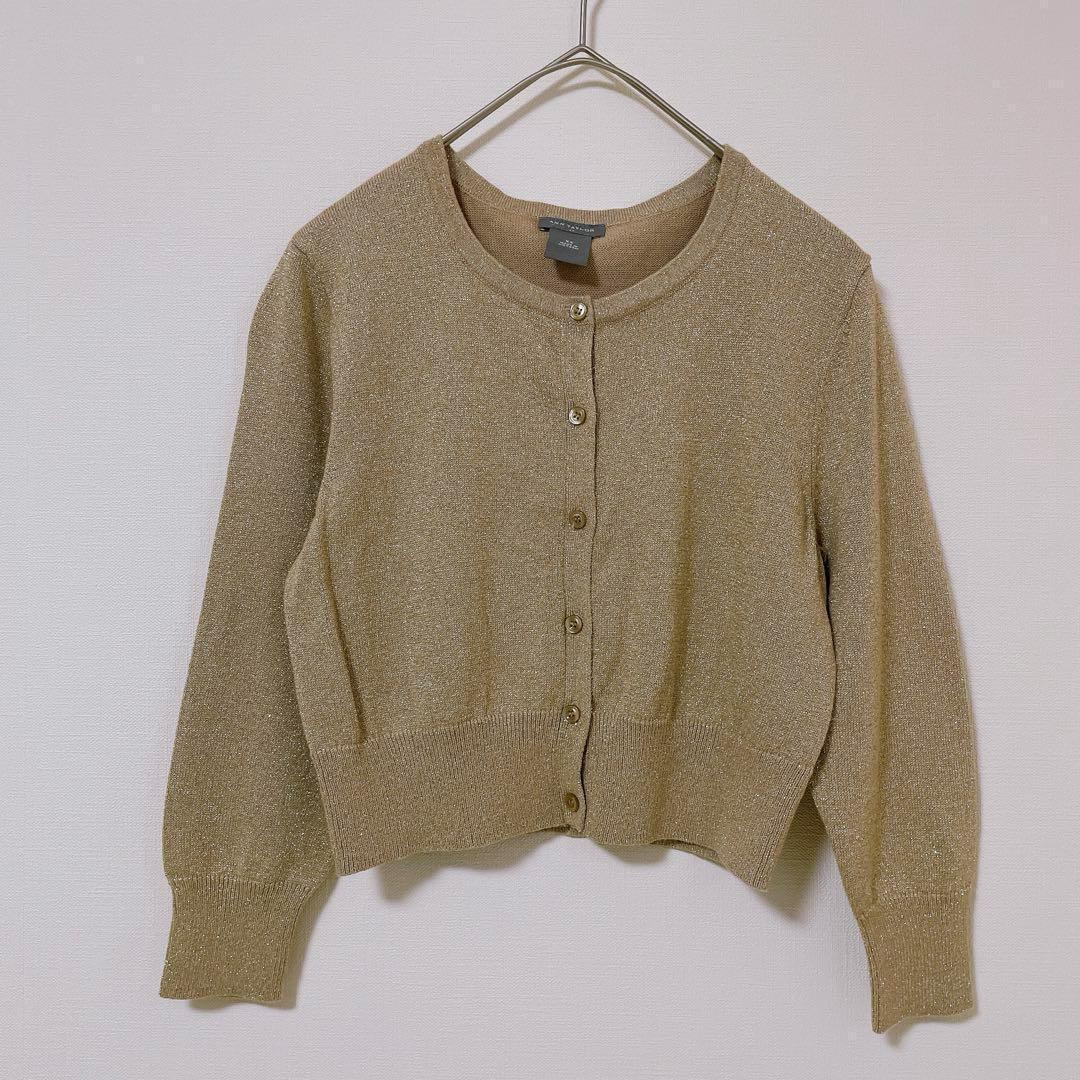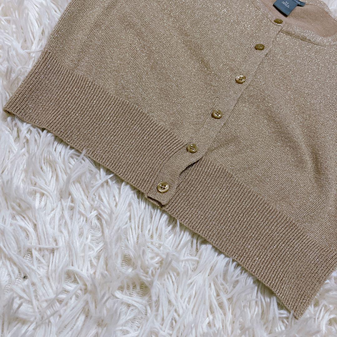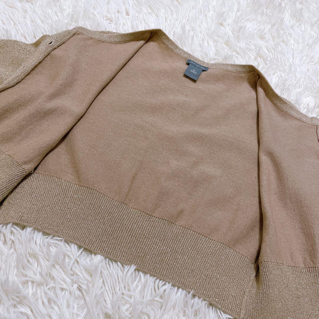 アンテイラー トップス カーディガン 七分袖 ショート丈 ラメ ベージュ XS