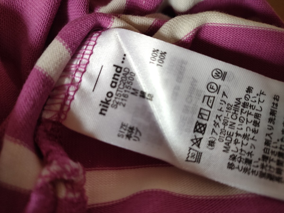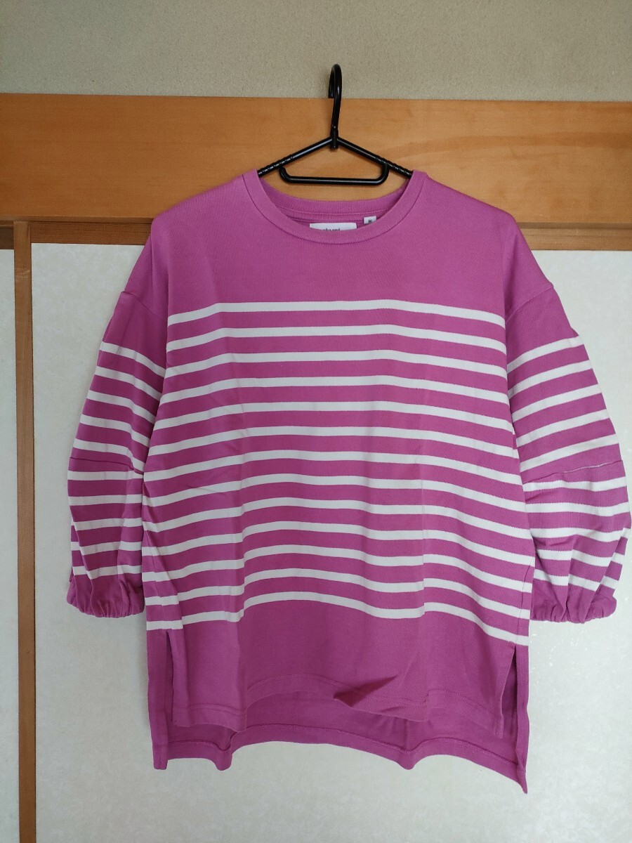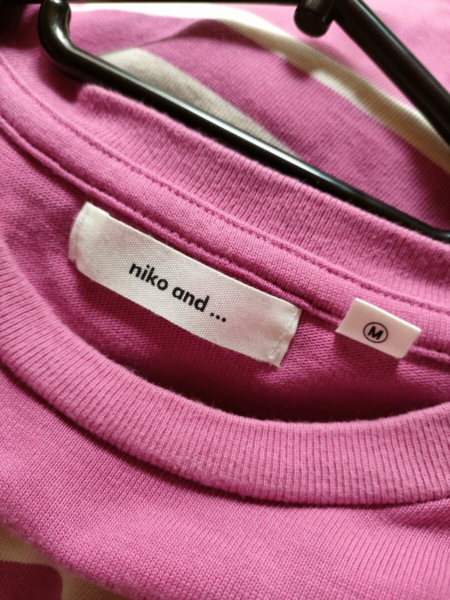 niko and… ニコアンド トップス 七分袖 カットソー ピンクボーダー Tシャツ M