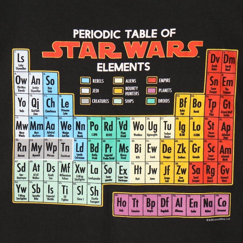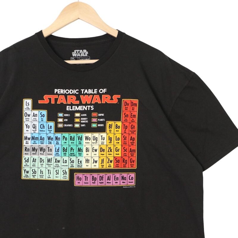 STAR WARS スターウォーズ クルーネック 半袖プリントTシャツ メンズUS-2XL 周期表 元素記号モチーフ ブラック hsc-0253n