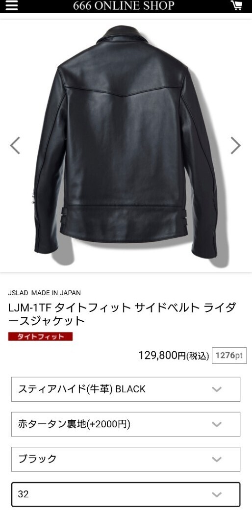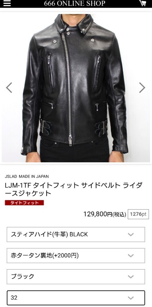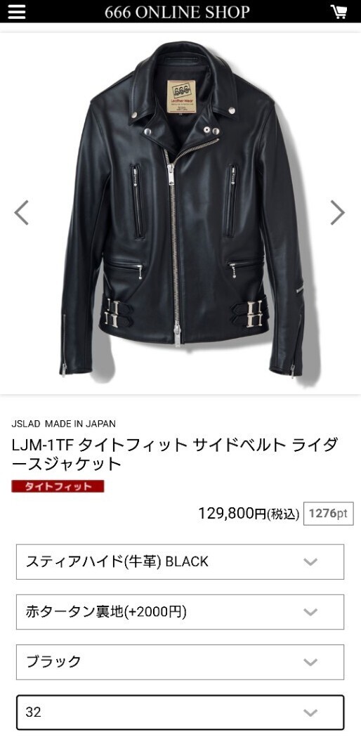 新品! 666 レザー ライダース ジャケット LJM-1TF タイトフィットモデル タータンチェック裏地 32