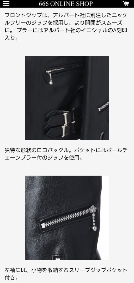 666 レザーウェアのスタンダード製品に使用されているスティアハイドは、バイカージャケットにふさわしい厚さ 1.2 ㎜以上を保持しており、