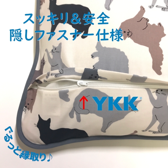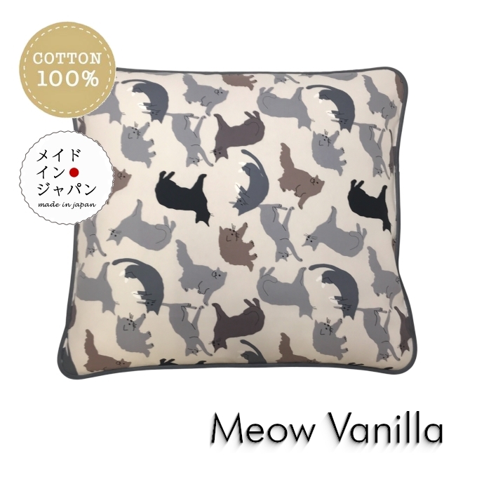 八端判座布団カバー ミャウ バニラ グレー ネコ猫柄 ざぶとんカバー 59×63cm(大判) 綿100%