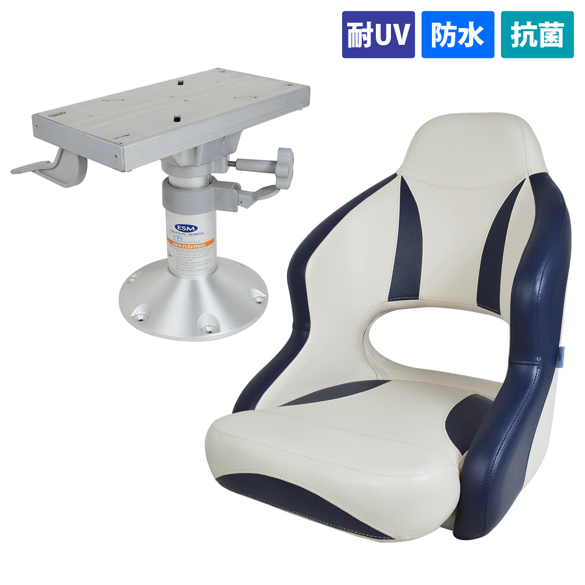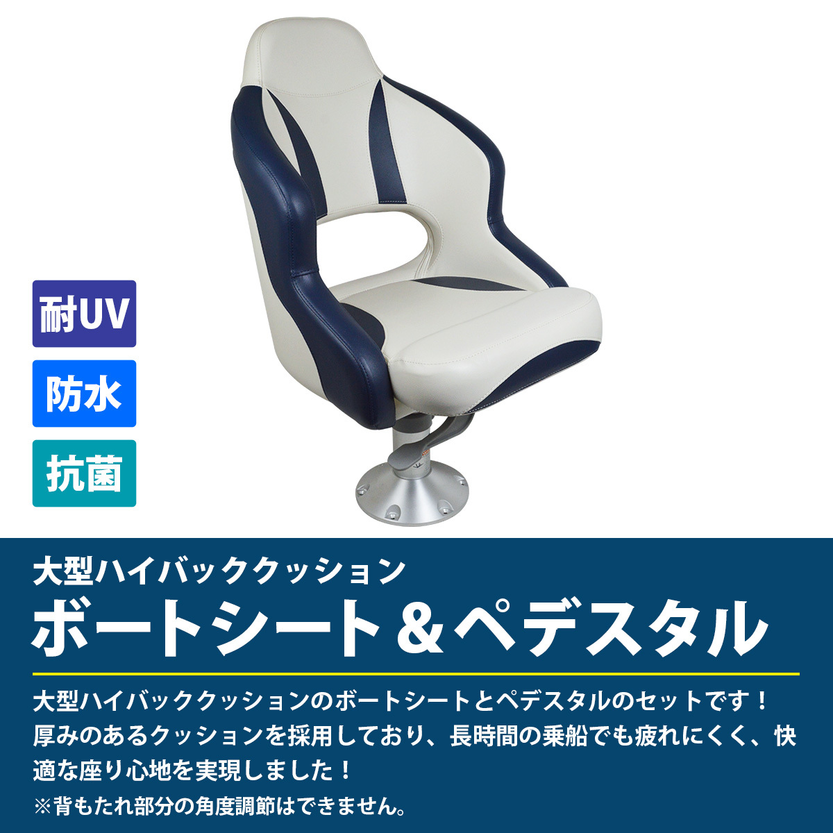 【送料無料】ハイバックシート ボート ペデスタル付 一式 マリンシート ホワイト ブラック 船舶 ツインカラー クルージングシート 船 椅子