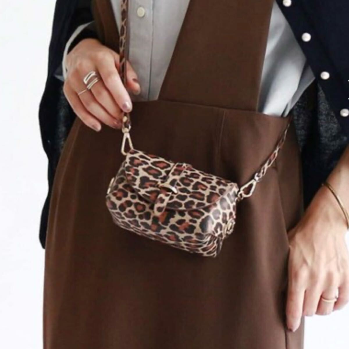 小さいながら存在感抜群のレオパード柄の女性らしいミニバッグ。