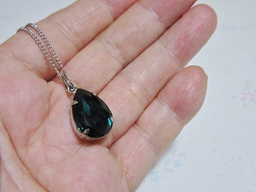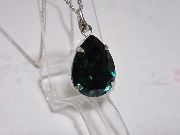 | サイズ | サイズ: ★トップの大きさは、20×13ミリです。 ★エメラルドスワロフスキー 1石の大きさは、18×13ミリです。 ★チェーンは、ロジウムメッキの喜平チェーン50cmです。 |