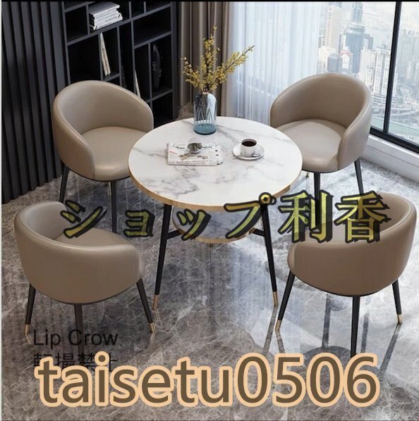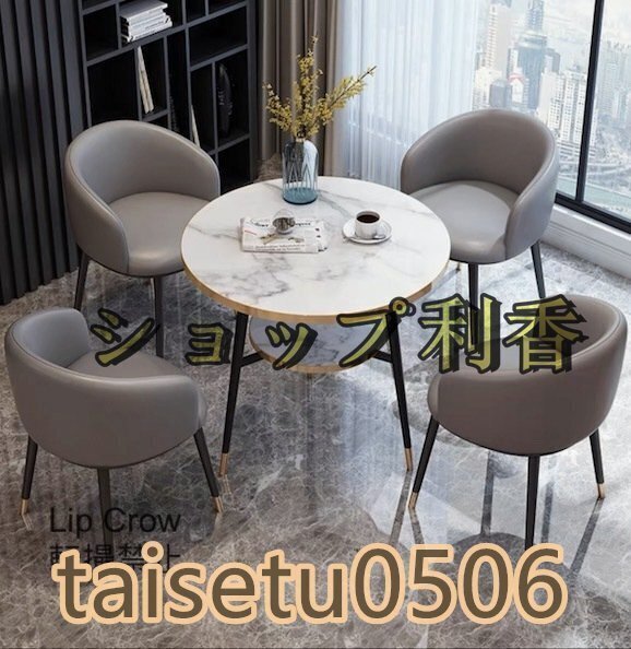 5点セット北欧風 会議用テーブル 大理石 柄 丸型 コーヒーテーブル リビング テーブル ダイニングチェア