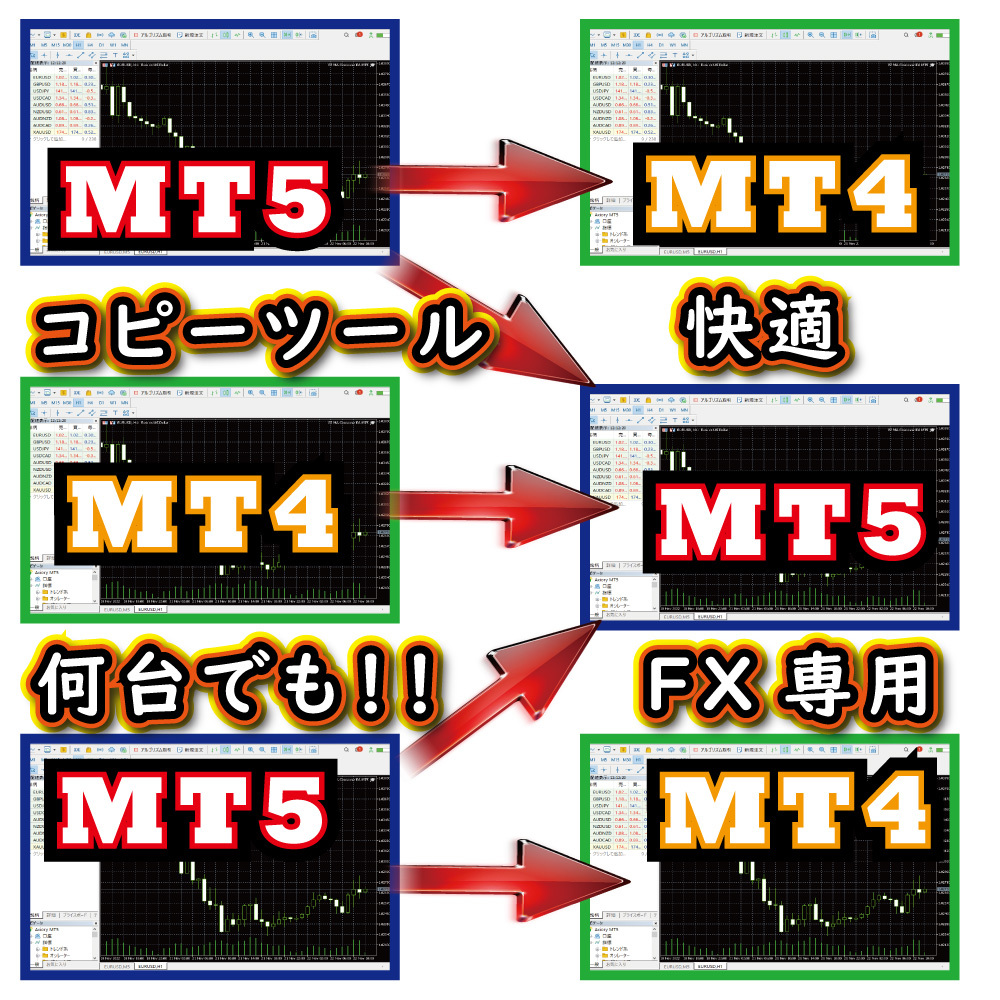 MT4からMT5やMT5からMT4へトレード内容をコピーしたい方向けとなります。 ※何台でも可能です!! MT4だけコピーされたい方は 単品にてMT4用とMT5用を販売しております。 【MT4用ヤフオク出品表】 https://auctions.yahoo.co.jp/seller/MT4用ライクネス 【MT5用ヤフオク出品表】 https://auctions.yahoo.co.jp/seller/MT5用のライクネス また既にMT4用若しくはMT5用のコピーツールをご落札済みの方は、 もう片方をご購入して下されば別途、ファイルをお送り致します。 この出品表から落札して頂く必要は御座いません! 詳細は下記よりご確認頂けます。 ↓↓↓↓↓ https://forex.weller.asia/mt5-mt4/ コピーツール・ライクネスはいま一番売れているコピーツールとなります! 理由をいくつかあげると下記のようなことが御座います。 ★MT4やMT5の数に関係なくコピー出来ます。 面倒なユーザー認証やプロテクションは一切御座いません。 一度落札して頂ければ、2個目をご購入して頂く必要は御座いません。 ★豊富すぎるマニュアル コピーするだけなら当然の話です。 現役のトレーダーがヘビーユーザーとなり、ライクネスを使用しているので、 大人気の手法「途中からナンピン」や「単ポジ手法」や「反対売買トレード」などを マニュアルにて公開しております。 また画像や文字だけでは少し難しいという方向けに YOTUUBEチャンネルも解説して随時更新しております。 チャンネル名:【新】FXキャッシュバック戦略 https://www.youtube.com/channel/【新】FXキャッシュバック戦略 ★充実したサポート サポートはメールだけでなく、LINEでも行います。 またTwitterもやっているので気軽にご質問も可能となります。 購入前の不安を全て無くし、落札して頂きたいと考えております。 ★特典多数 MT4用では 睡眠不足を解消!新・自動決済ツール・サバイバーを無料でプレゼント! またその他、表には公表されてない(出来ない)特典の記事を多数ご用意しております。 詳しくはMT4用のマニュアルにてまずはご確認下さい。 URL https://forex.weller.asia/likeness/ ご不明な点などが御座いましたらお気軽にお問い合わせください。 杉原 | ||||||||||||||||