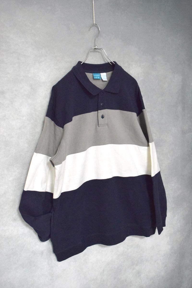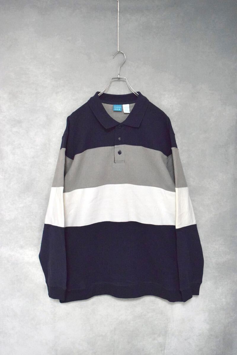【 裾ポケ付き 】 パネル切り替え スウェット ポロシャツ / size L / 00s 00年代 Y2K 90s 90年代 ボーダー ファット レギュラー