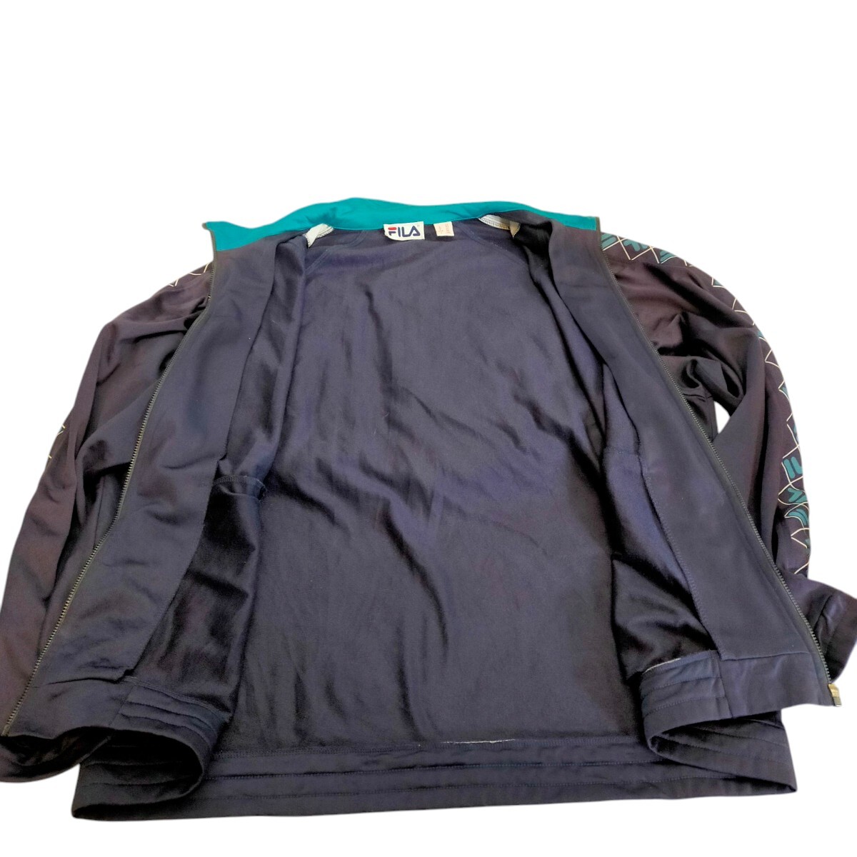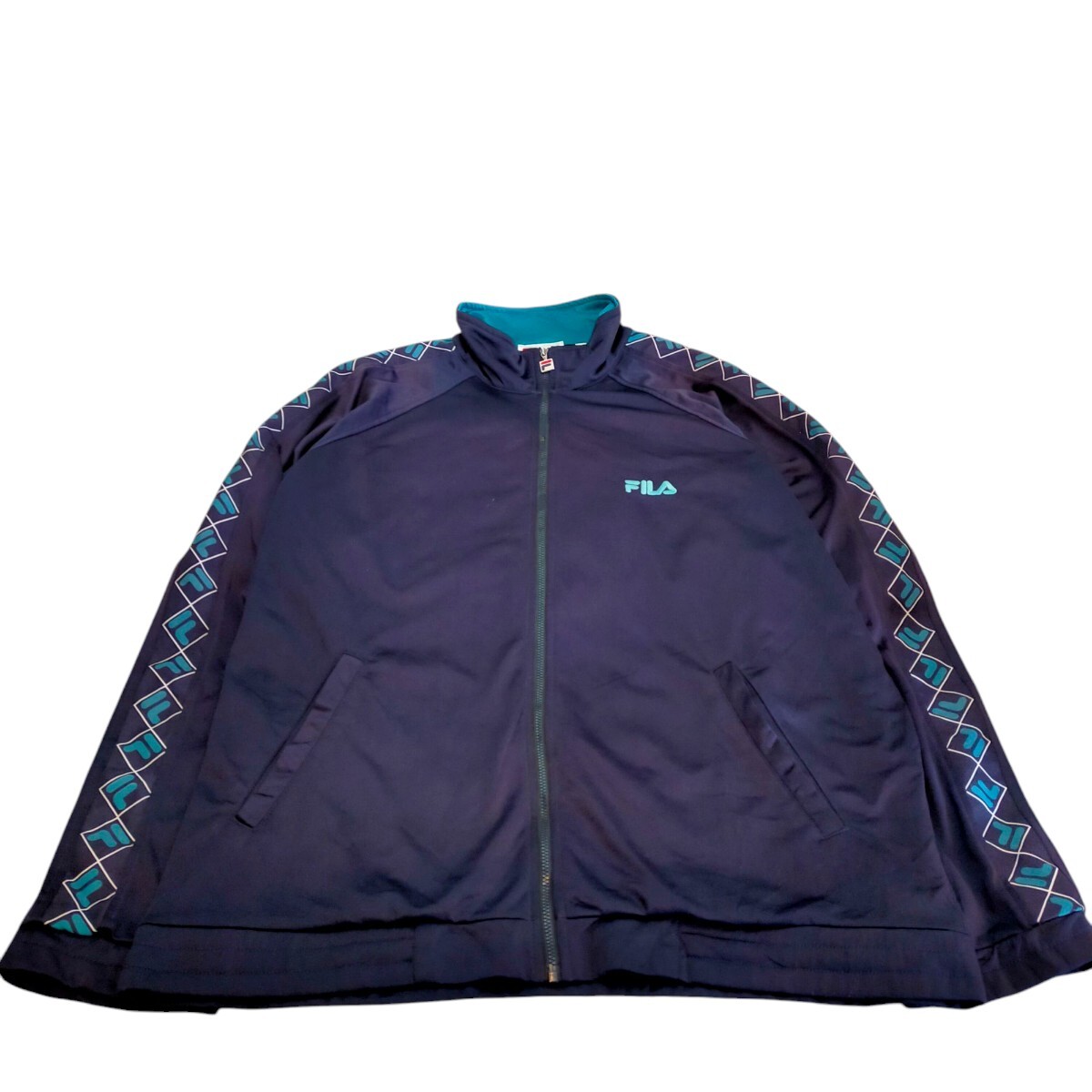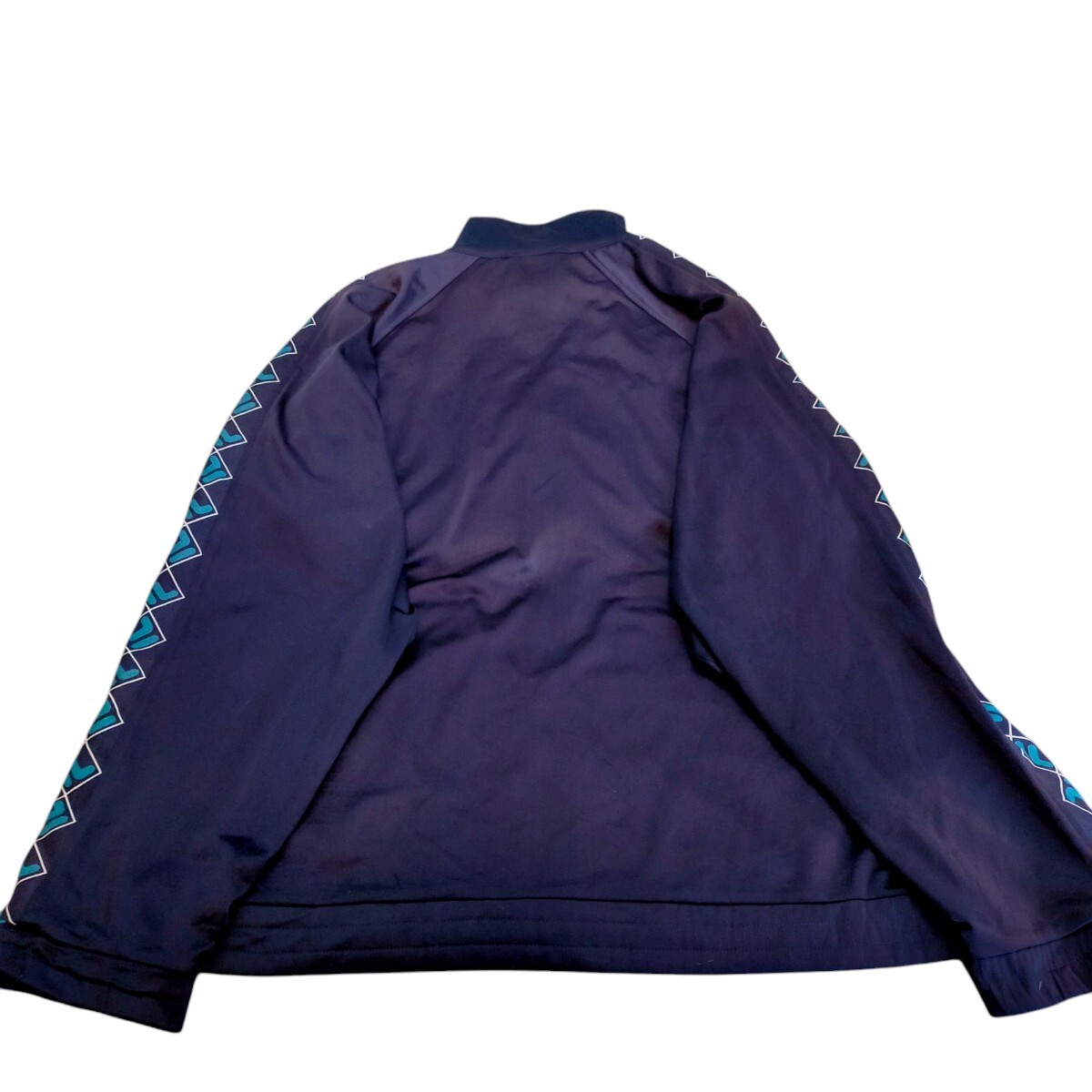カラーはネイビー系、ラグランスリーブ、両袖にロゴデザインが入っています。