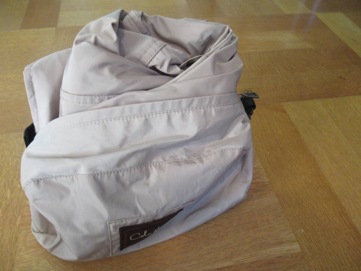 素材がポリエステルで旅行時の雨・寒さ用に幾分大きめのサイズを購入しました。