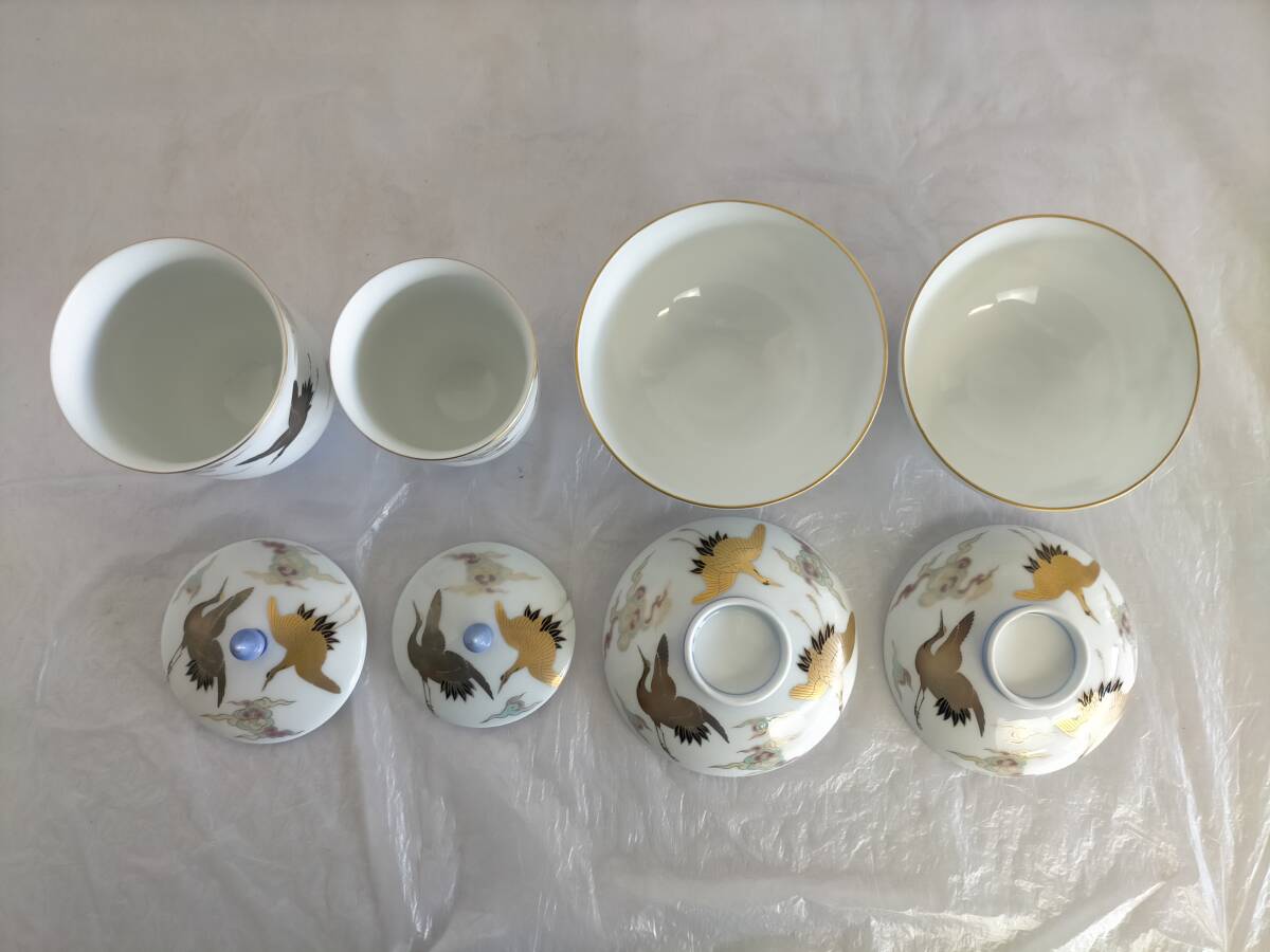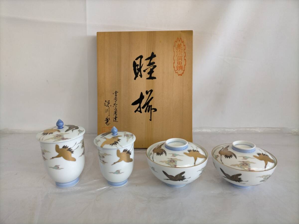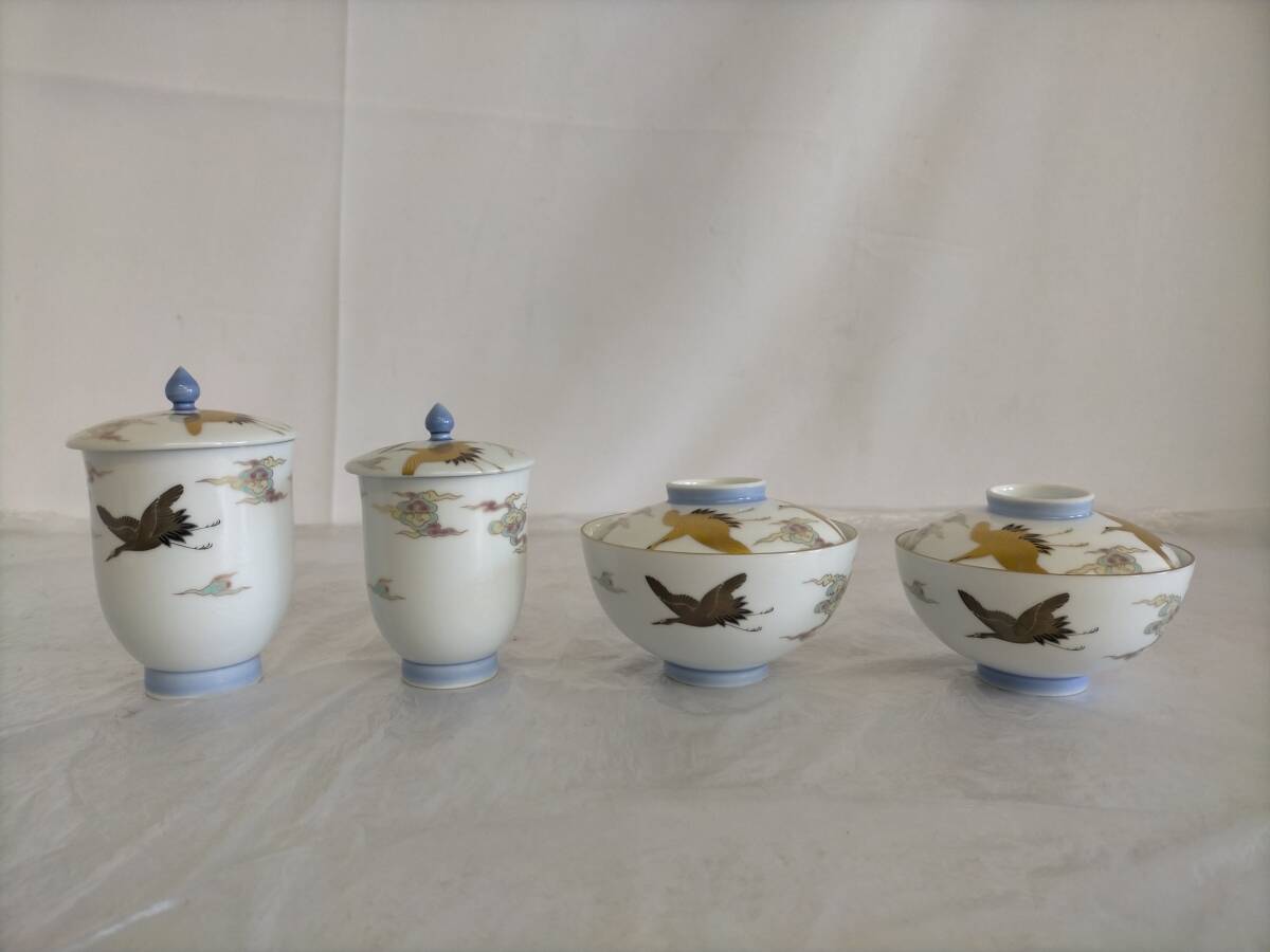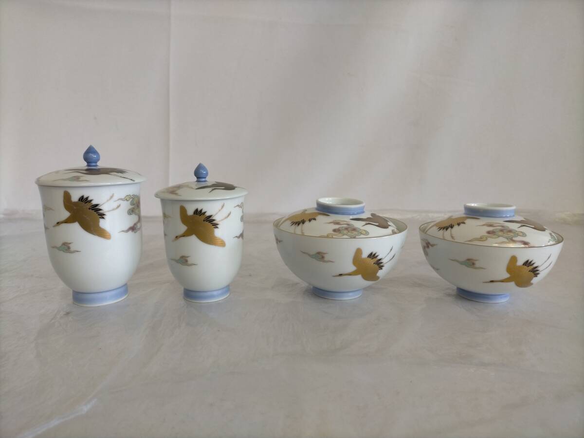 有田焼 深川製磁 睦揃 蓋付湯呑 蓋付飯碗 夫婦 ペア 2客セット 色絵 雲流 金銀彩 舞鶴 金彩 銀彩 瑠璃彩磁 宮内庁御用達 和食器 |
