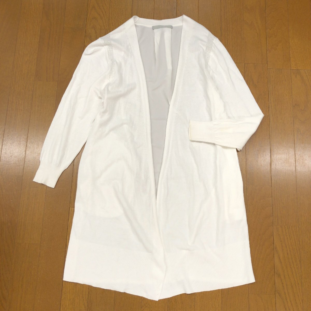 ef-de エフデ 切替デザイン コットン ニット ロング カーディガン 9(M) 白 ホワイト 羽織り 国内正規品 レディース 女性用