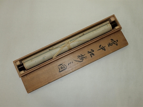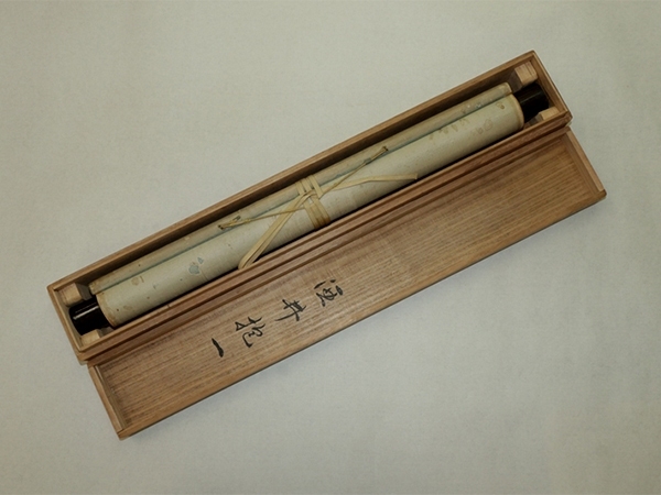酒井抱一 さかい-ほういつ(1761-1829) 江戸時代中期-後期の画家,俳人。 宝暦11年7月1日生まれ。酒井忠仰の次男。播磨姫路藩主酒井忠以の弟。 37歳で出家し,文化6年江戸根岸に雨華庵を営む。 絵を狩野高信,宋紫石,歌川豊春に学び,のち尾形光琳に傾倒。 「夏秋草図屏風」など琳派風の絵を描いた。俳諧にも優れた。 文政11年11月29日死去。68歳。江戸出身。 名は忠因。字は暉真。通称は栄八。別号に鶯村など。 本紙は、染み、汚れ、折れ、皺、ヤケ、擦れがあります。 表装は、染み、汚れ、折れ、皺、虫食い、破れ、ほつれ、剥れ、 軸先に汚れ、軸紐に劣化があります。 【サイズ】 作品 横約31cm×縦約100cm 表装 横約45cm×縦約166cm |