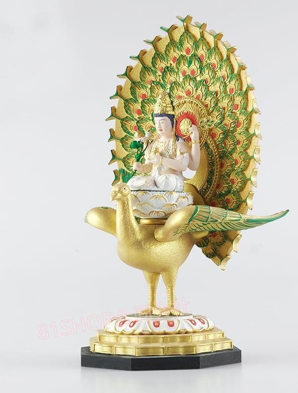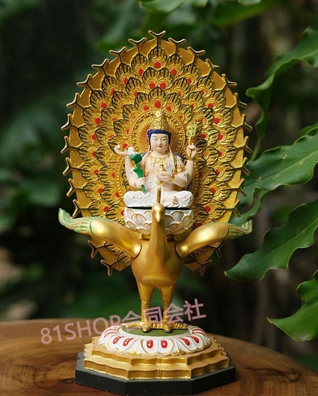 【孔雀明王(くじゃくみょうおう)】 孔雀明王は、仏教の信仰対象であり、密教特有の尊格である明王のひとつ。 衆生を利益する徳を表すとされる。