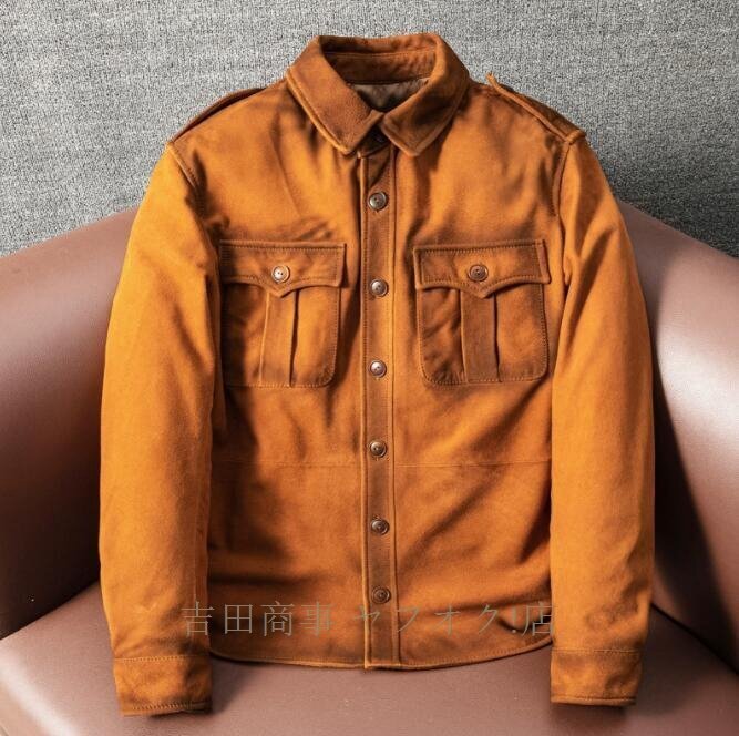 ☆新品シープスキン 羊革 スエード メンズ 復刻 本革 ビジネス シングル ライダース ヴィンテージ加工 レザージャケット M~4XL