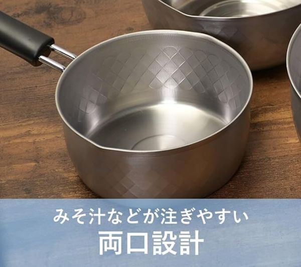 素材・材質:本体/ステンレス鋼(クロム14%)(底の厚さ0.7mm)、取っ手/フェノール樹脂(耐熱温度150度)、寸法:18cm、満水容量:1.8L