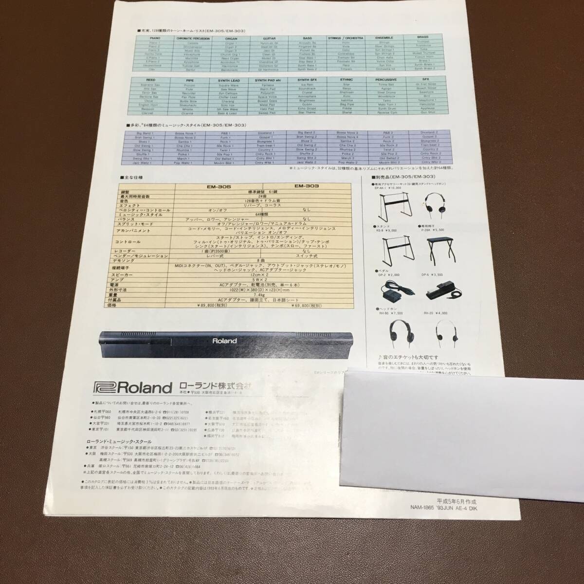 谷村有美 1993年 ローランド EM-305 EM-303 チラシ カタログ フライヤー パンフレット roland キーボード