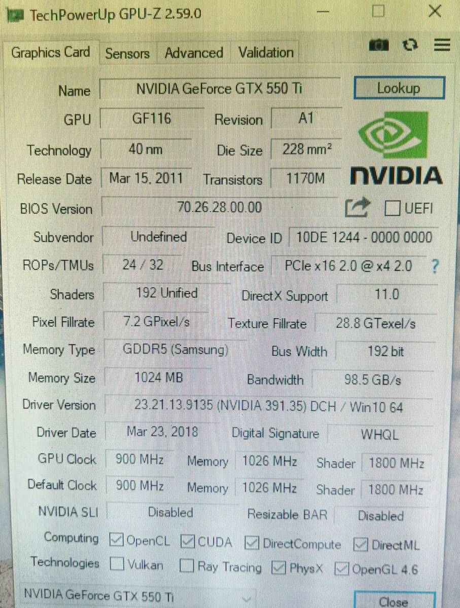 ・マザーボードに取り付けてWindowsを起動し、GPU-Zで確認しました。(HDMI端子の確認済み)