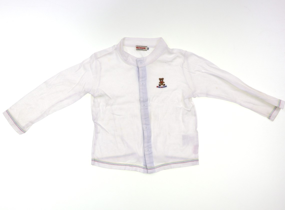 薄手のカットソー生地です。全体的にシミや薄っすらとした黄ばみ汚れがありますが、外遊び用などにいかがでしょうか。