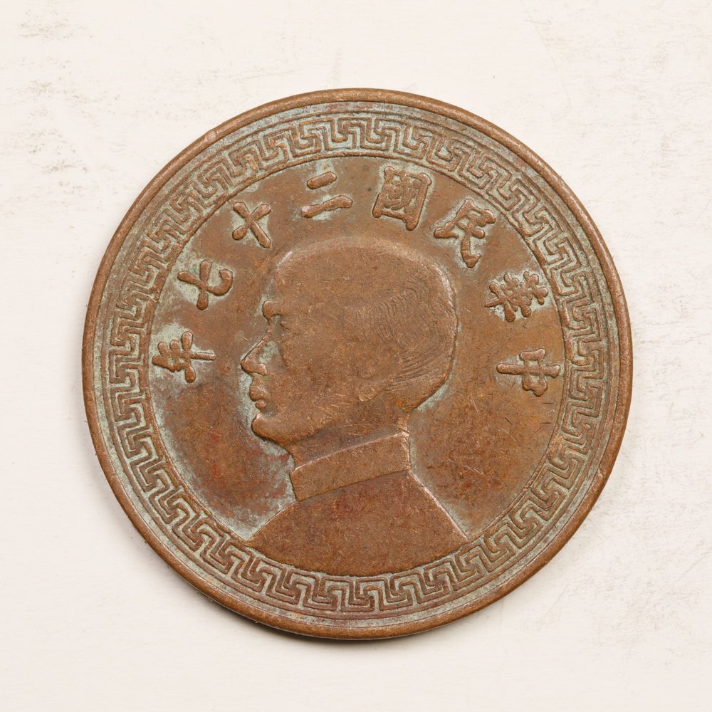 Y271 中国古銭 銅幣 中華民國二十七年 孫文 廿分 直径約28.34mm 重量約8g 厚み約1.71mm