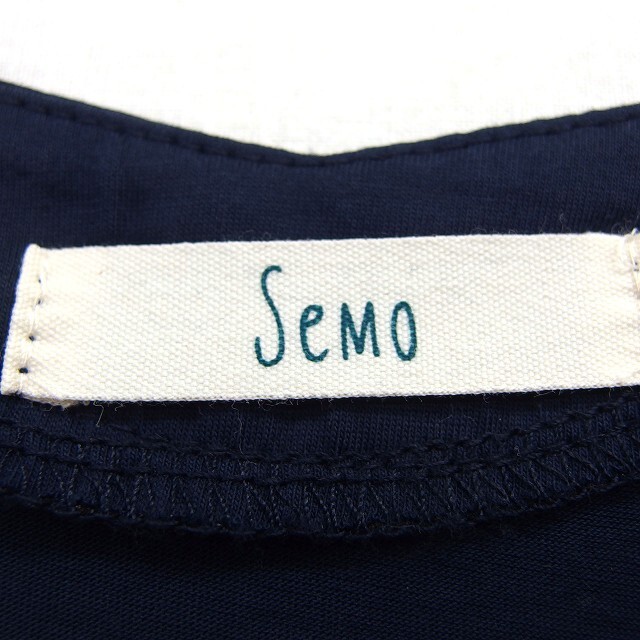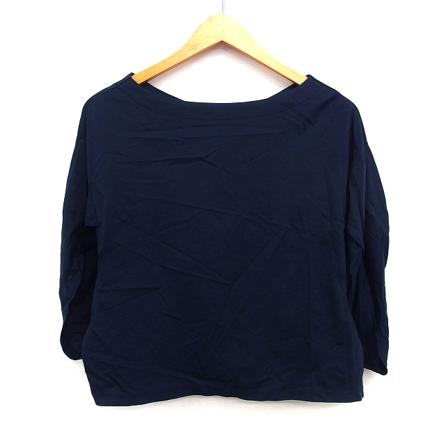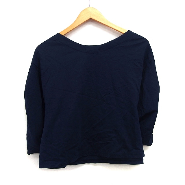 SEMO セモ カットソー ブラウス ショート丈 無地 シンプル ボリューム袖 七分袖 丸首 コットン 綿 F ネイビー 紺 /HT19 レディース