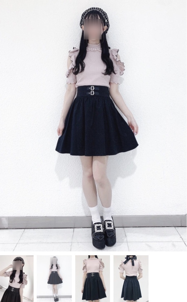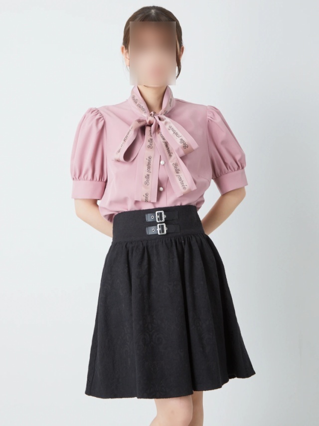 ジャガードアイテムは大人っぽい印象になりがちですがこちらのスカートはウエストにベルトデザインがついていてかっこよくまとめることが出来ます。ブラウスとの合わせはもちろんラフに着ても可愛いです。』