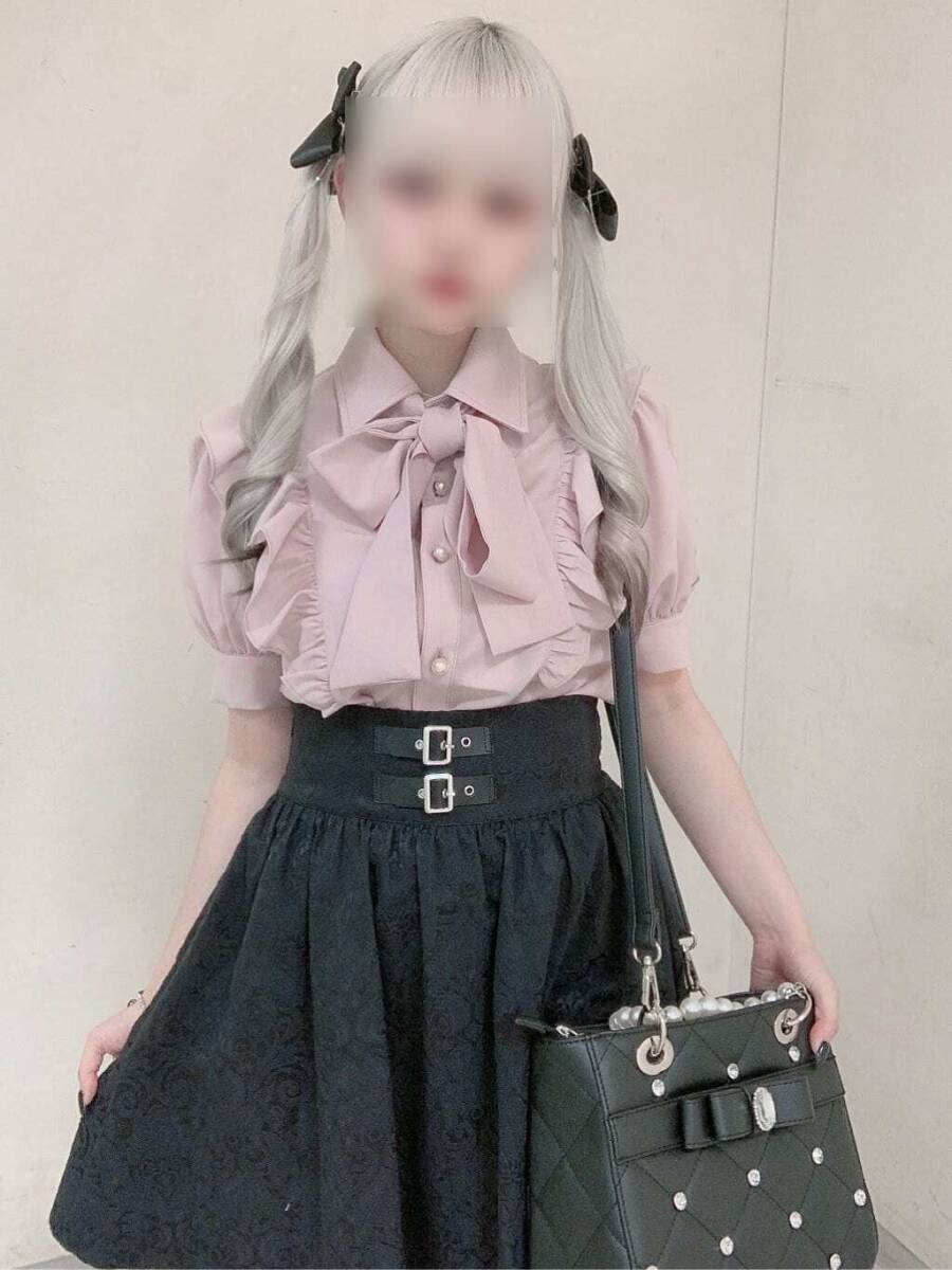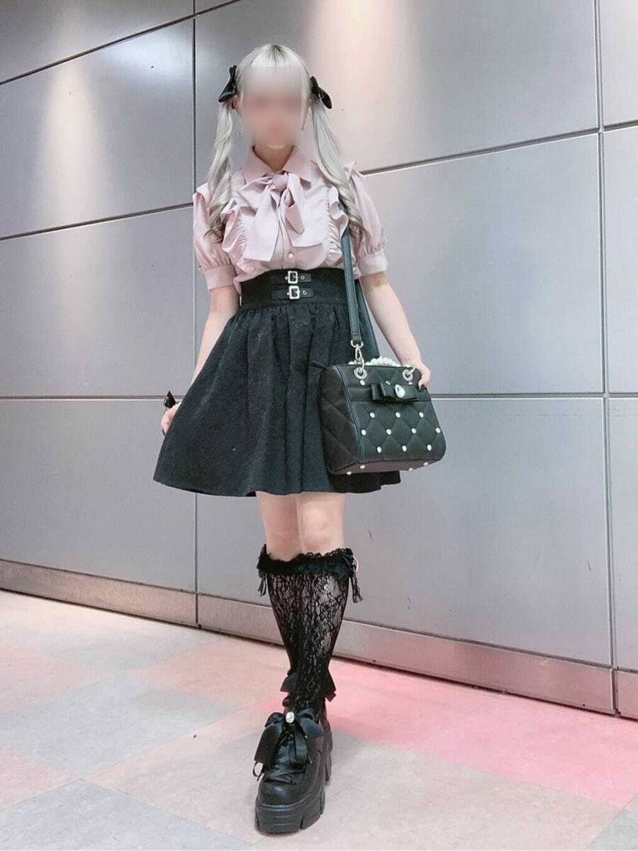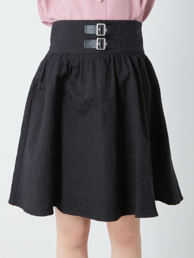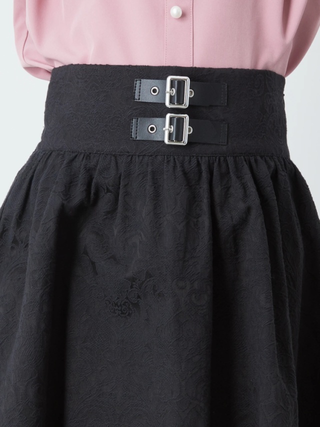 ■Ank Rouge■合皮ベルトギャザースカート ブラック黒■ジャガードハイウエストゴムシャーリング■ゴシックゴスロリガーリー量産型地雷系