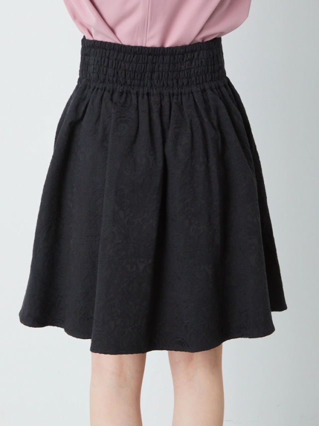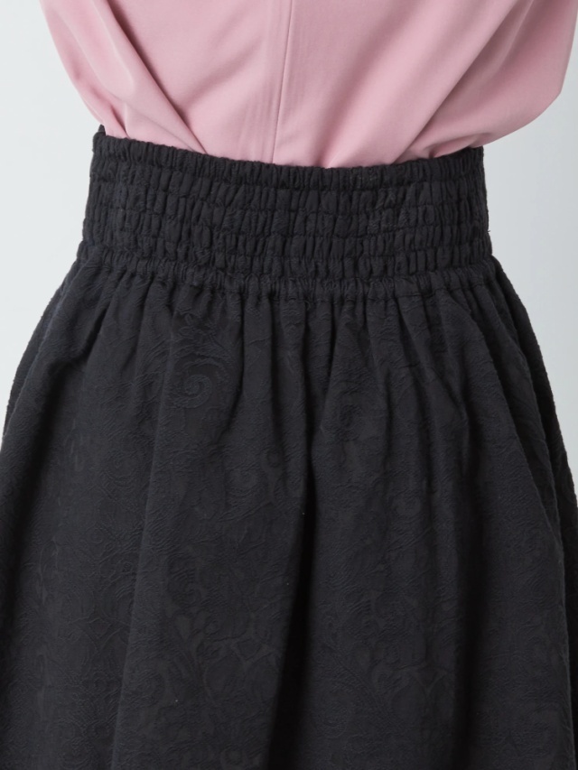 立体感のある総柄のスカートは高級感と上品な印象に。たっぷりギャザーの入ったスカートは、ふんわり広がるラインがとっても綺麗 ブラウスとの相性抜群です