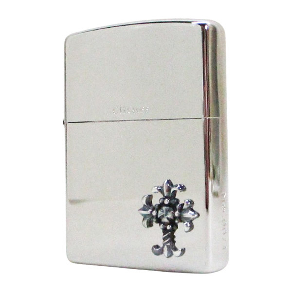 クロスのメタルが付いたニッケルベースのシンプルなZIPPO。