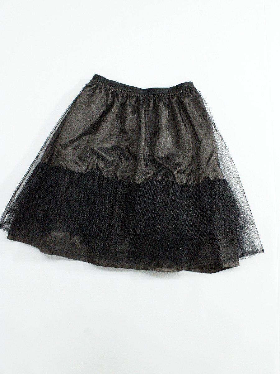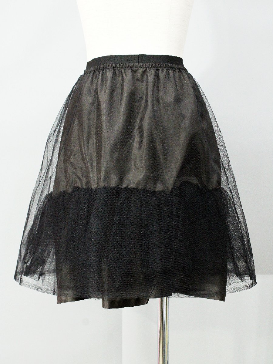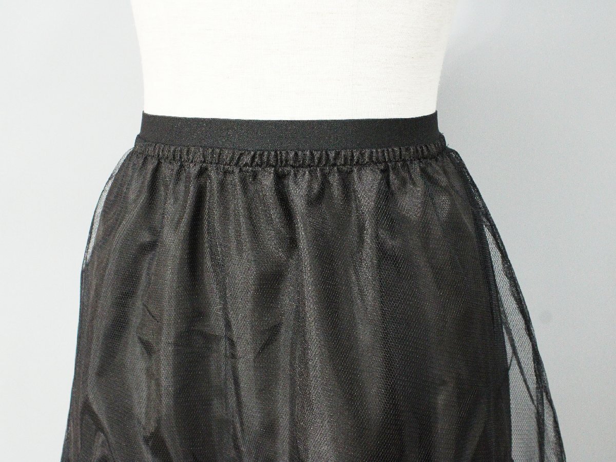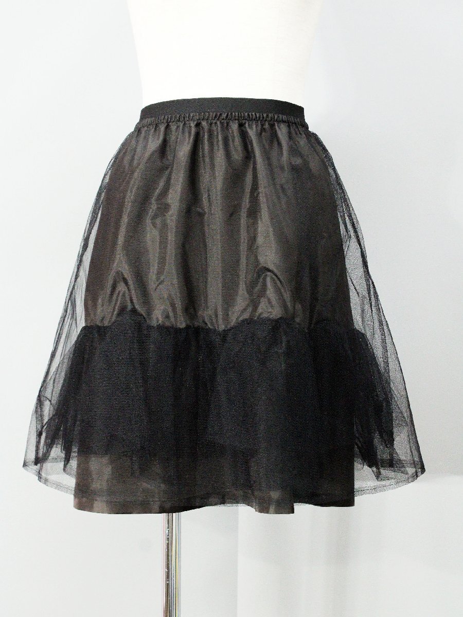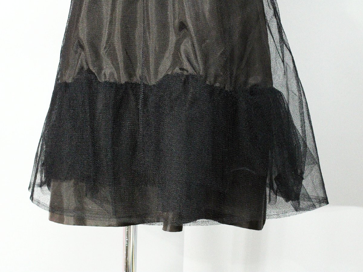 小さいサイズ美品 Mプルミエ ウエスト総ゴムショート丈チュールパニエ:スカート 黒茶36 rj402