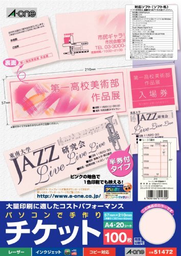 | パソコンでオリジナルのチケット・カードが作れます。 折り曲げるだけで簡単に切り離せます。 チケットに適した、厚みとコシのある用紙です。 |