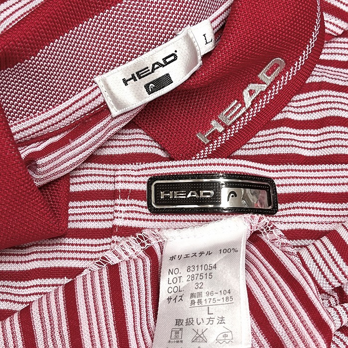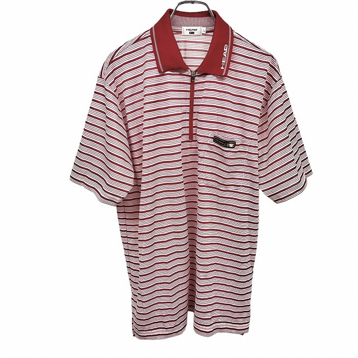 | 商品タイトル | ヘッド HEAD ポロシャツ 鹿の子 ボーダー ハーフジップ 半袖 ポケットにロゴパッチ 裾スリット ポリ100% L レッド 赤×白 メンズ |