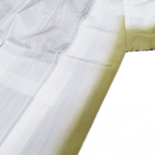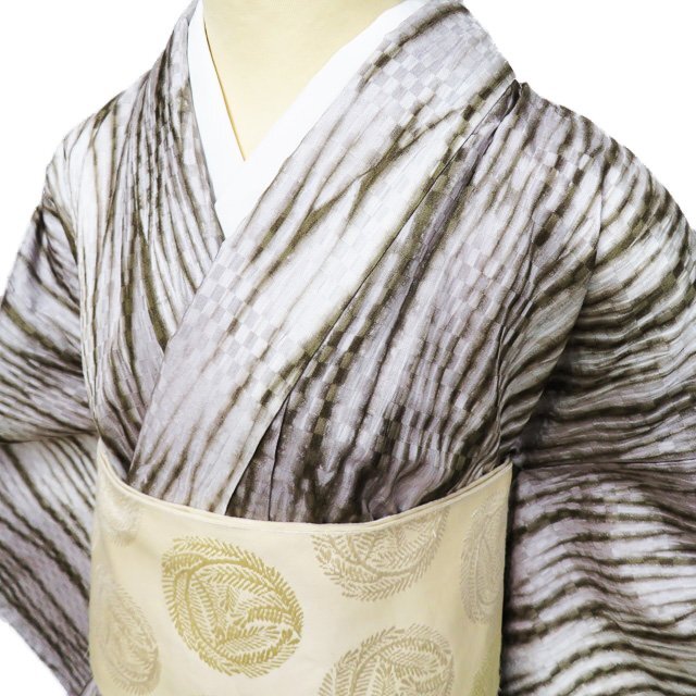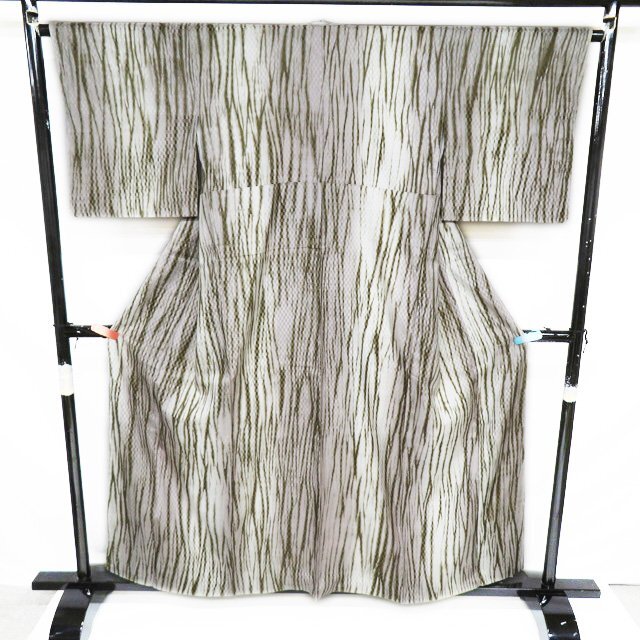 丈158cm(+24) 裄65cm(+6) 袖丈47cm(+8) 前幅25cm 後幅28cm ※サイズのお直し、承ります。 (身丈のみ、身幅のみのお直しは承っておりません) ※身丈は肩から測っております。 ※()内はおおよそのお直しいただける長さです。胴裏の長さ等によって()内の長さ通りお直しできない場合があります。 単位:cm 素材 正絹 商品ランク C ●着用時期 10月~5月(+-2週間) ●着用シーン 観劇、ご友人との食事、お買い物など ●お色 灰白色 海松色 右襟にシミがございますが、目立たない程度でまだまだご着用いただけるお品物です。 写真に写っている着物のみの販売で、帯等の付属品はついておりません。 一部商品は実店舗・他サイトでも並行して販売しておりますので売り切れの際はご了承ください。 その他多数販売中 n | ||||||