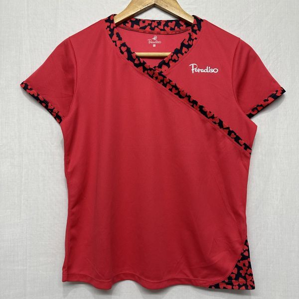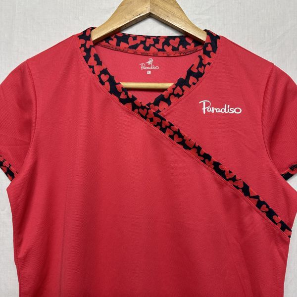 〇PARADISO パラディーゾ ブリヂストン GOLF ゴルフ ウエア ショート スリーブ 半袖 シャツ レディース 赤 レッド L