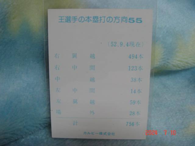カルビー 77年プロ野球カード 『おめでとう!756号特集』 NO.55 (王/巨人) 青版