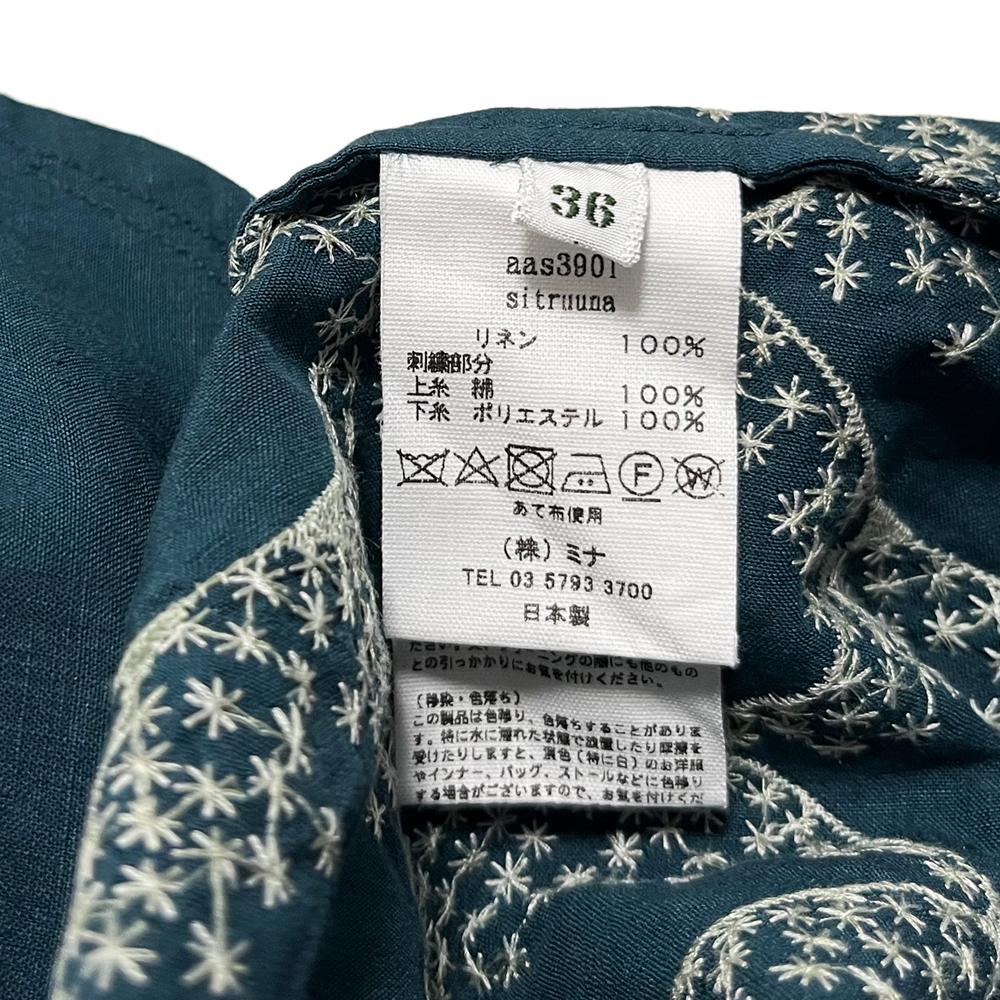 ミナペルホネン sitruuna ワンピース 付属品:ウエスト紐ベルト。 両サイドポケット付き。 ”sitruuna” 幾何学のひし形にレモンのモチーフを重ね、レモンの柔らかな姿を連続柄で表現したテキスタイル。 レモン表面の凹凸を光の反射のように刺繍で描くことで、レモンと光が溶け合うような表情に。 ぜひいかがでしょうか。 ■色:深緑系 ■サイズ:36(肩幅55.5cm 袖丈20cm 身幅55.5cm 着丈101cm) ※素人寸法ですので多少の誤差はご了承ください。 ■状態:A(2度着用程度の美品。使用感、目立つ汚れ・傷等なく良好です) ※状態は上からS/A/B/C/D の評価となります ■素材:写真参照 |