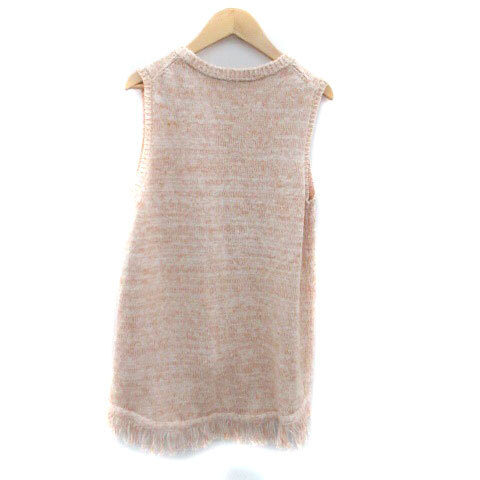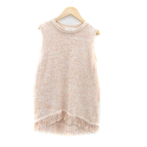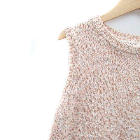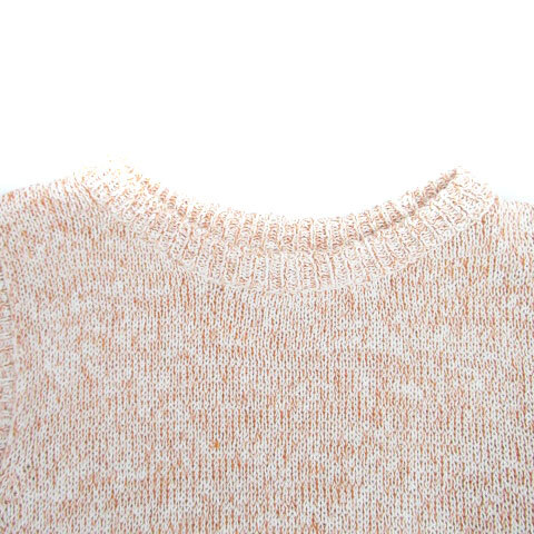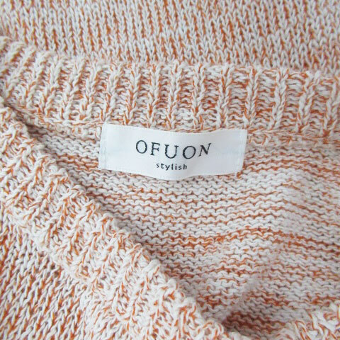 オフオン ofuon ニット セーター ラウンドネック ノースリーブ フリンジ 38 M オレンジ オフホワイト /HO13 レディース